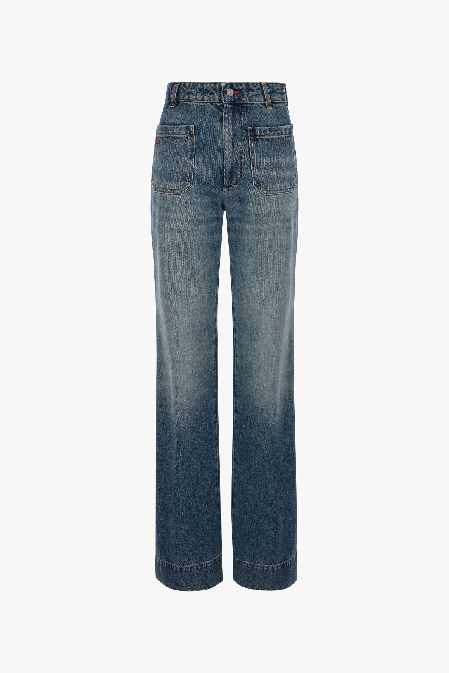 Crafted from 100% cotton denim, the Alina Jeans have a high waist and wide leg for a figure-flattering silhouette. A Mid-Blue wash brings a relaxed sophistication, while patch pockets and a Victoria Beckham embroidered logo add attractive design details.
