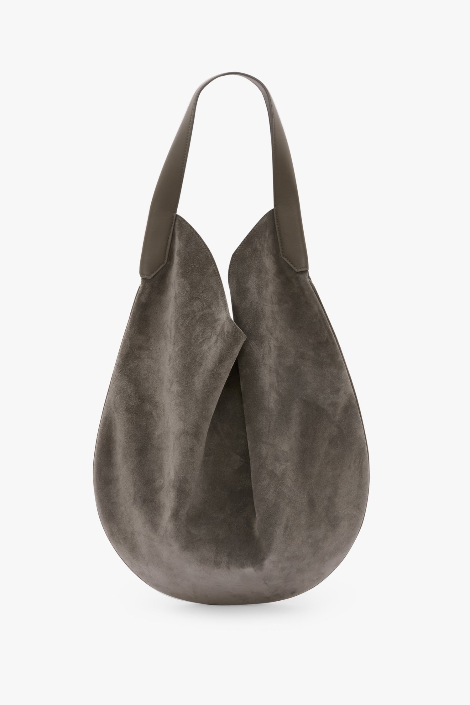 A crescent-shaped body and slouchy silhouette imbue the Soft Plié Hobo with a tactile sensibility. Crafted from suede leather and presented in subdued Pebble Grey, it has a single shoulder strap and removable flying pocket for added convenience.