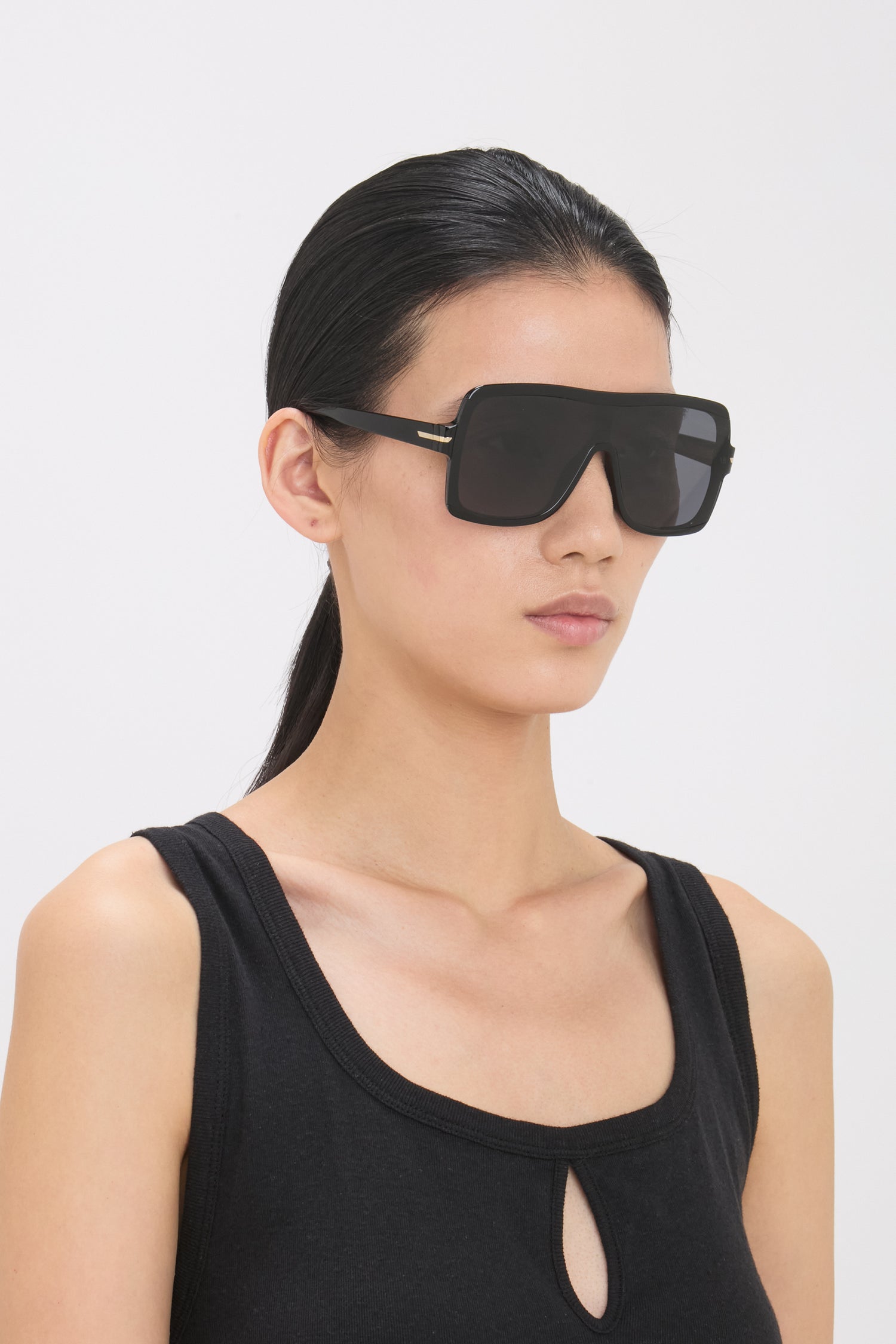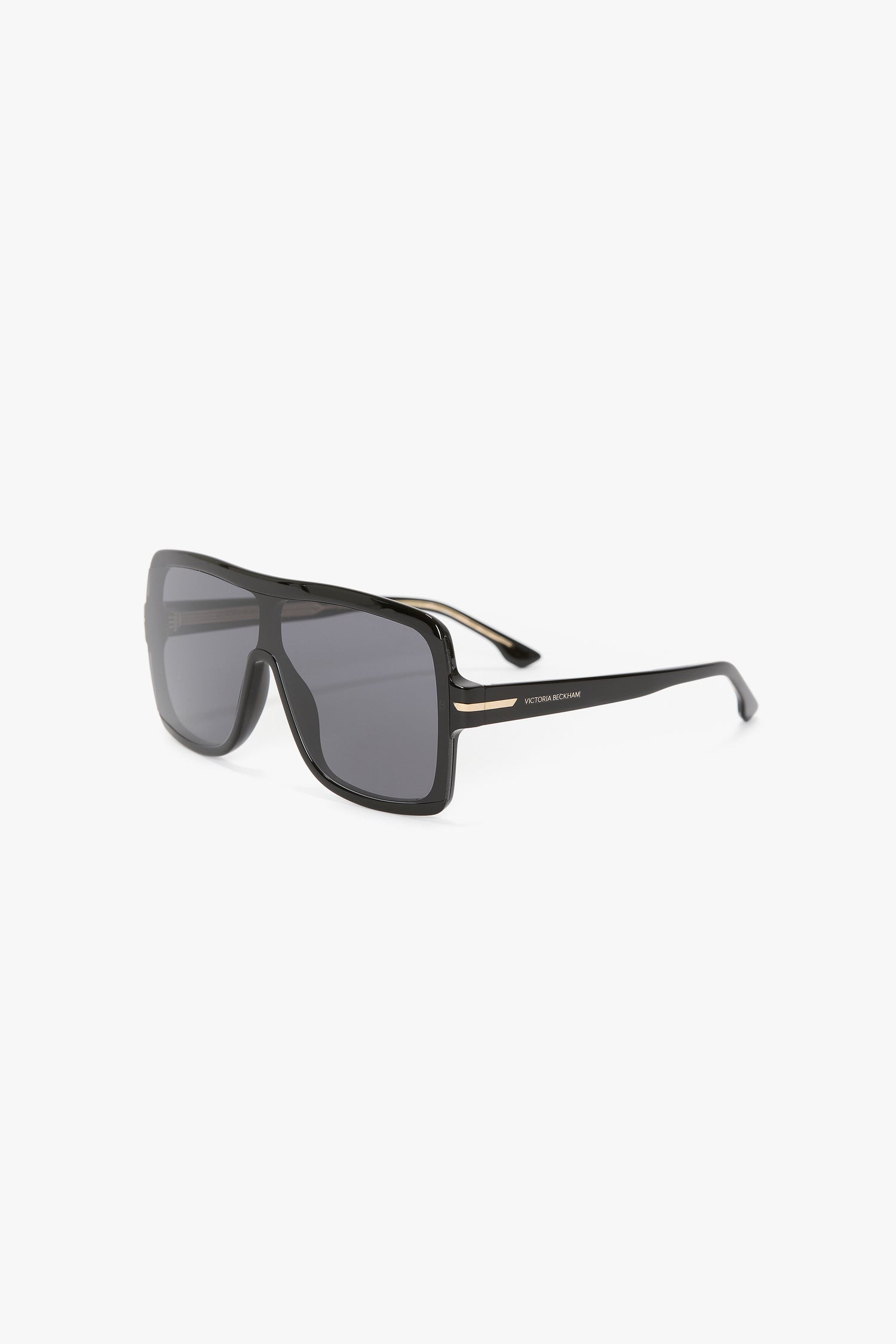 Defined by their squared flat mask, these sunglasses are crafted in acetate and presented in classic Black with contrasting grey lenses. They are embellished with the house’s signature V-cut logo.