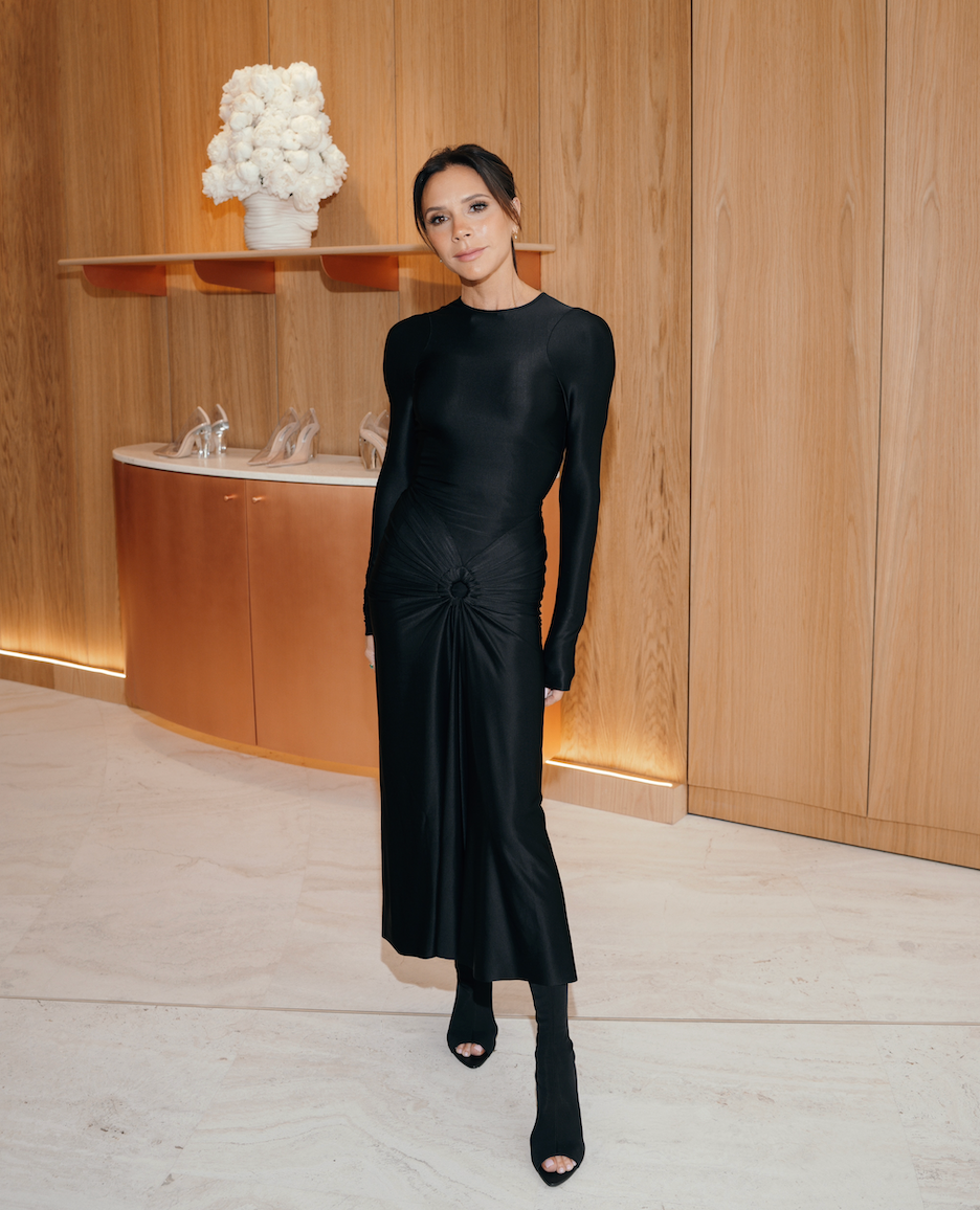 To celebrate the House’s exclusive capsule collection with Ounass, Victoria wore the Frances Midi Dress In Black for an intimate dinner in Dubai — a masterclass in dressing for the occasion.