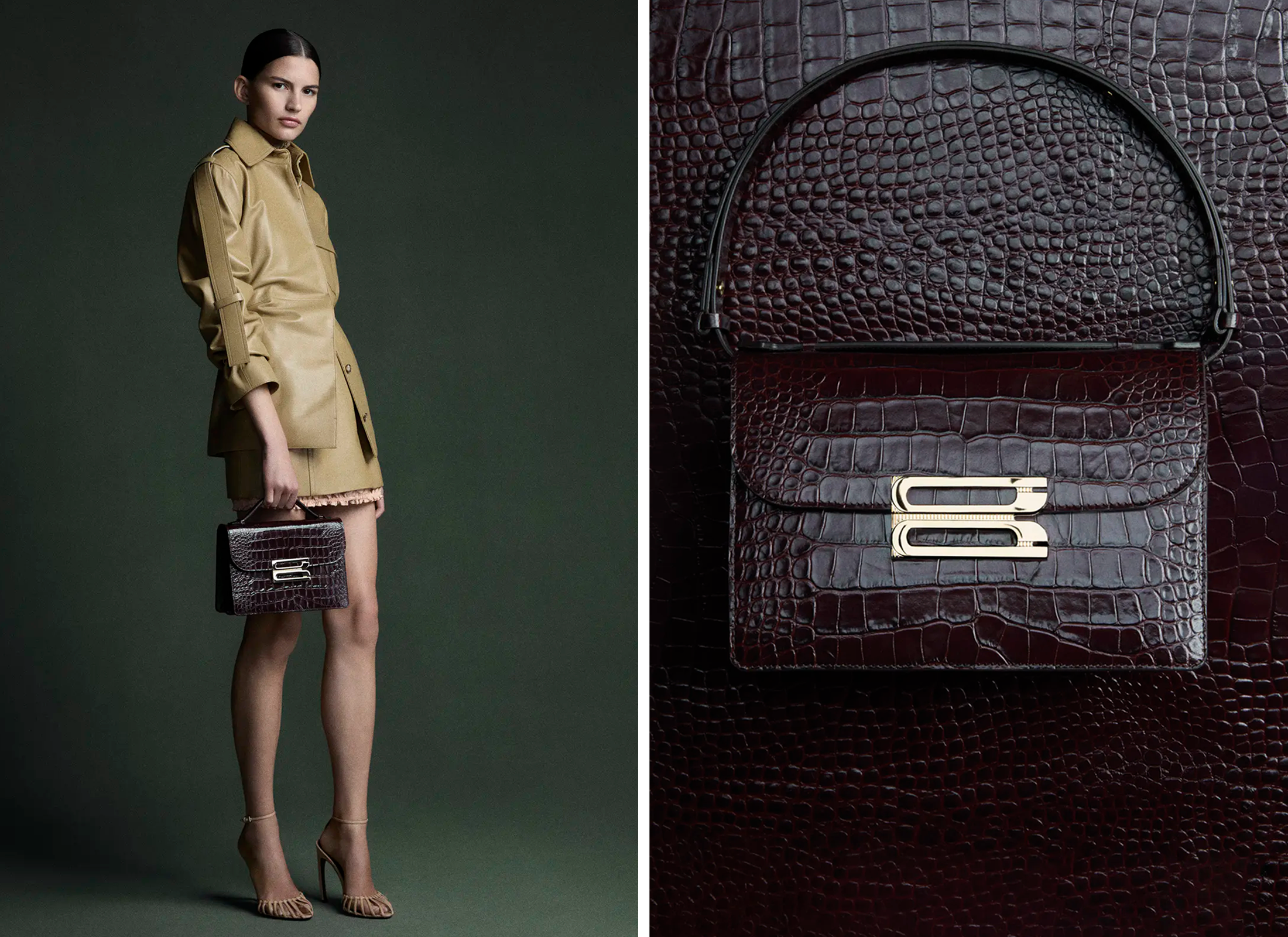 Quintessentially British in both name and nature, the Dorian evokesthe world of literature, its satchel-like silhouette paying tribute to London’s iconic Bloomsbury Set. But behind its well-behaved airs, this timeless silhouette has a secret — or four to be precise. Equipped with an adjustable strap and sliding top handle, the Dorian is in fact a crossbody, a shoulder bag, a top handle bag and a clutch: the perfect showcase for the house’s design ethos of considered pieces that adapt to the contemporary wardrobe.