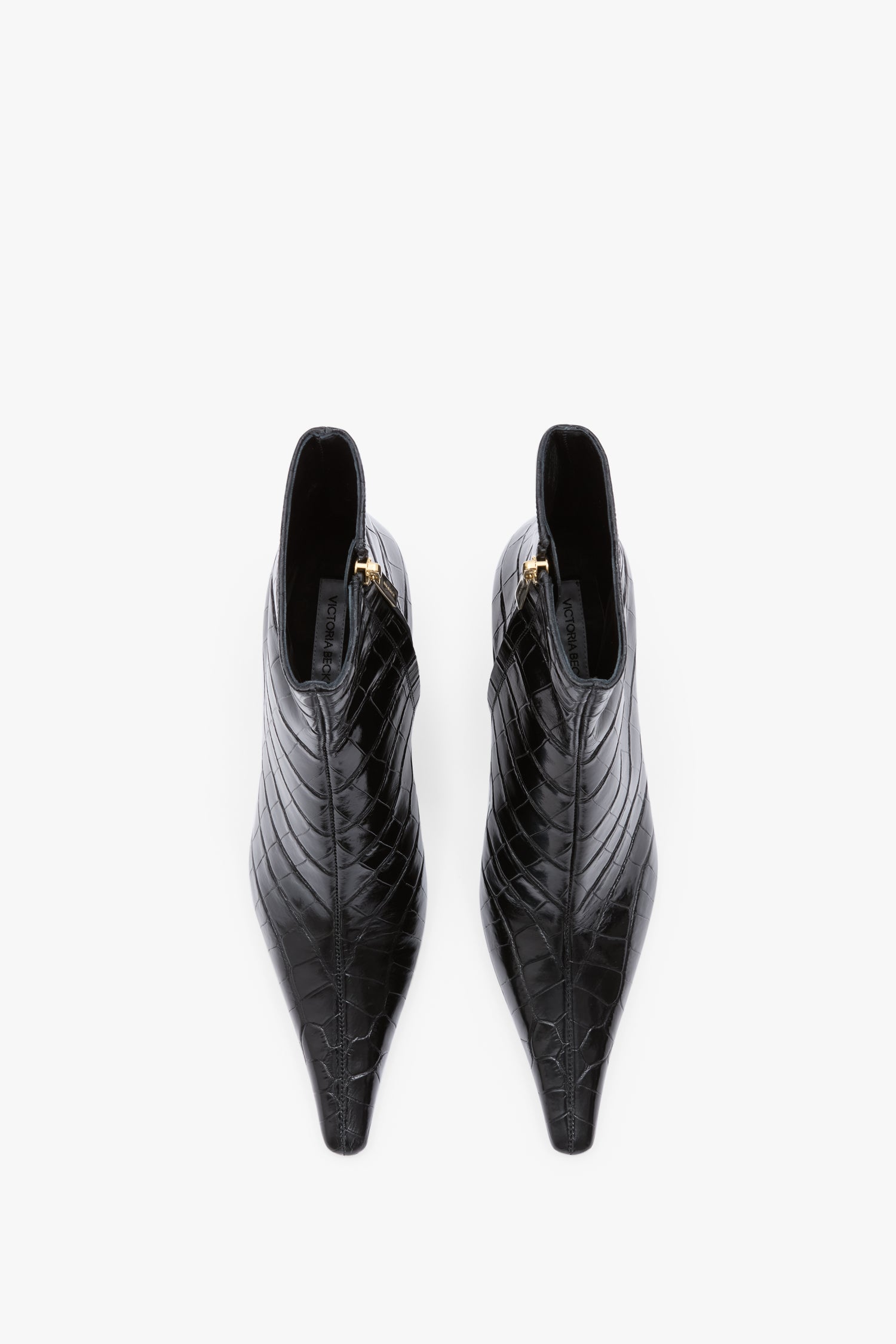 Sloan Stiletto Ankle Boot In Black Croc Embossed Leather