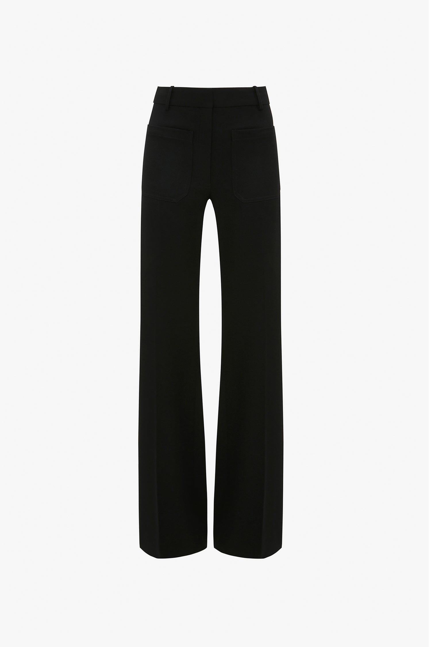 A classic from the Victoria Beckham archive, the Alina trouser draws on 70s style references, with modern flair. In universally flattering black, the structured trouser has a super-high waist and flared leg for a flattering silhouette. Patch pockets add an attractive design detail.