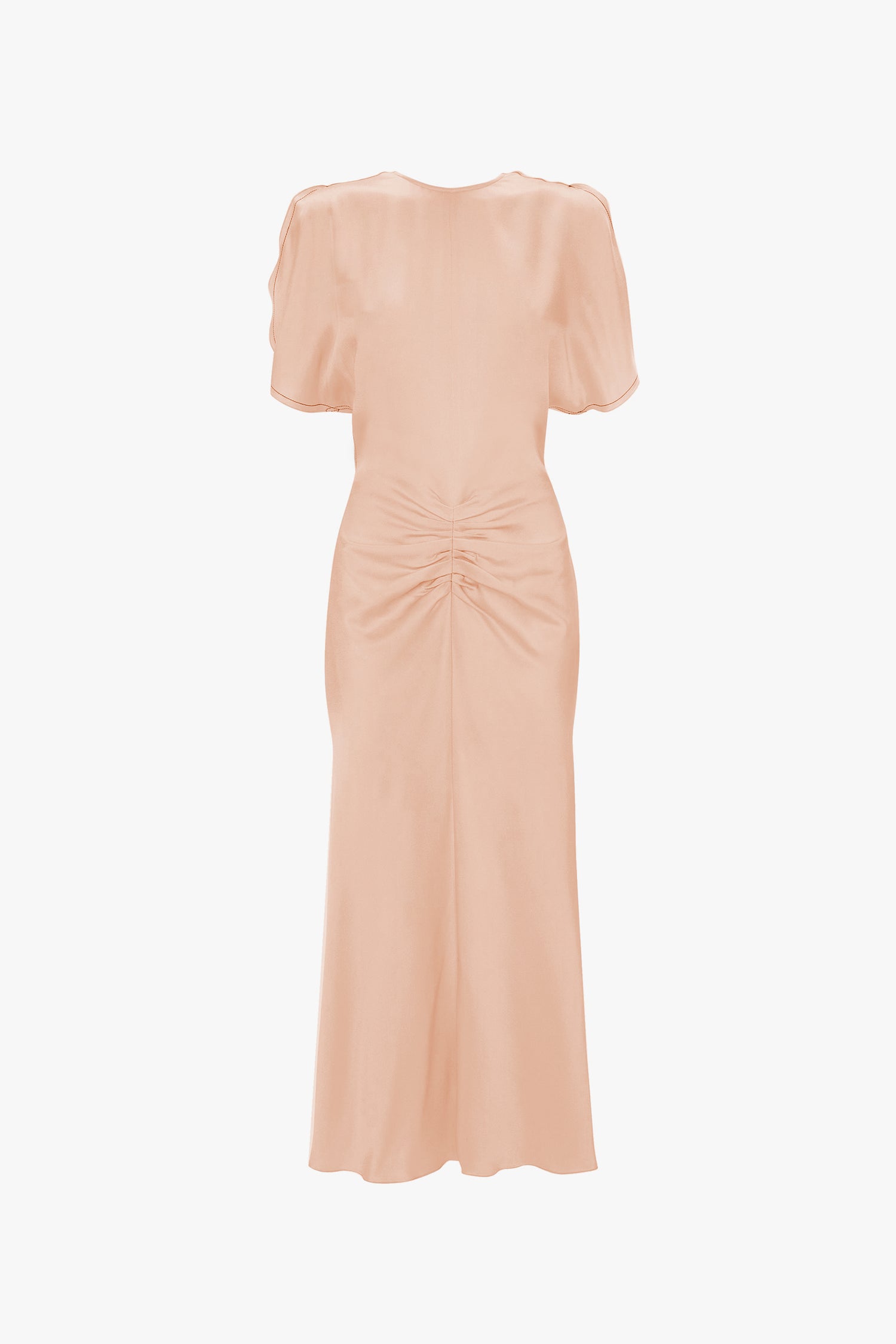 Crafted from crepe back satin, the Bela Midi Dress in Blossom has an effortless drape with tactile pleating at the waist. A V-shape neckline at the back adds a discreet but directional design detail, while the round front neckline and midi-length hemline look polished and professional.