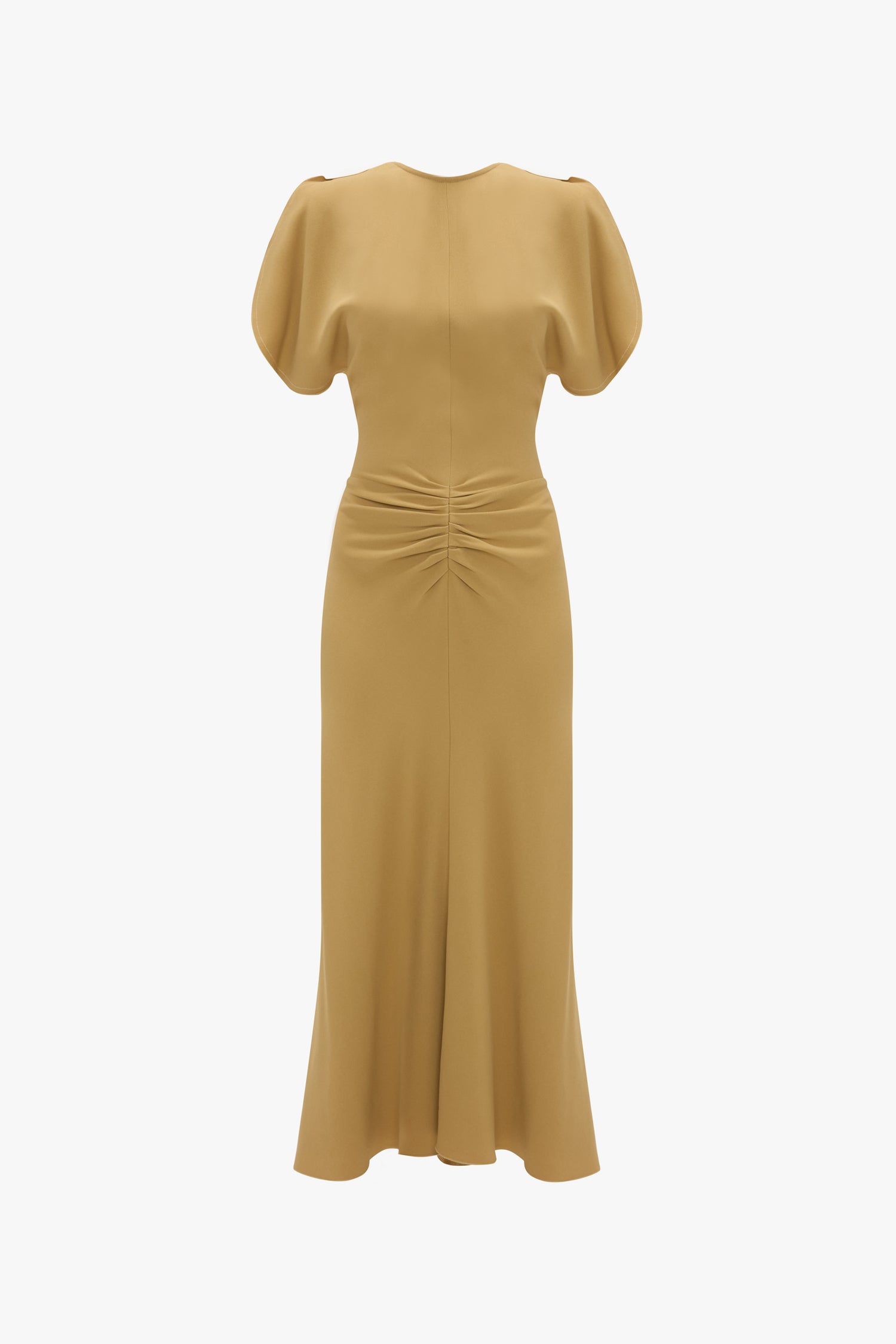 Presented in a warm shade of Honey, the Bela Midi Dress is a house favourite, delivering a professional and polished aesthetic. A waist and hip-hugging cut offers a flattering and forgiving silhouette, while a pleated detail at the waist and V-shape waist seam at the back add sensuous talking points. Finished with a contrasting topstitch and a longer-length hem at the back, it is a wear-anywhere piece.