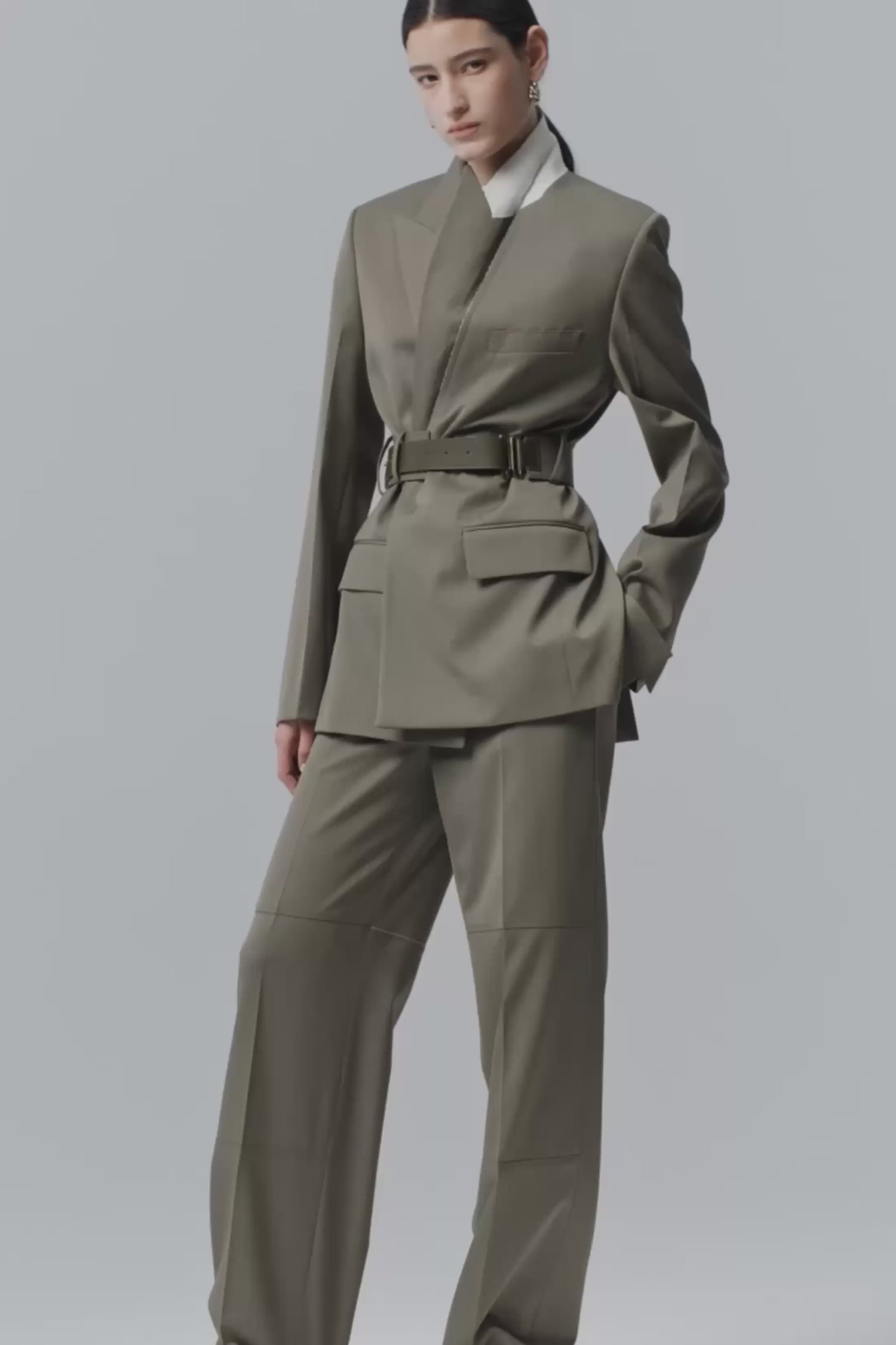 Belted Tailored Jacket In Sage Melange