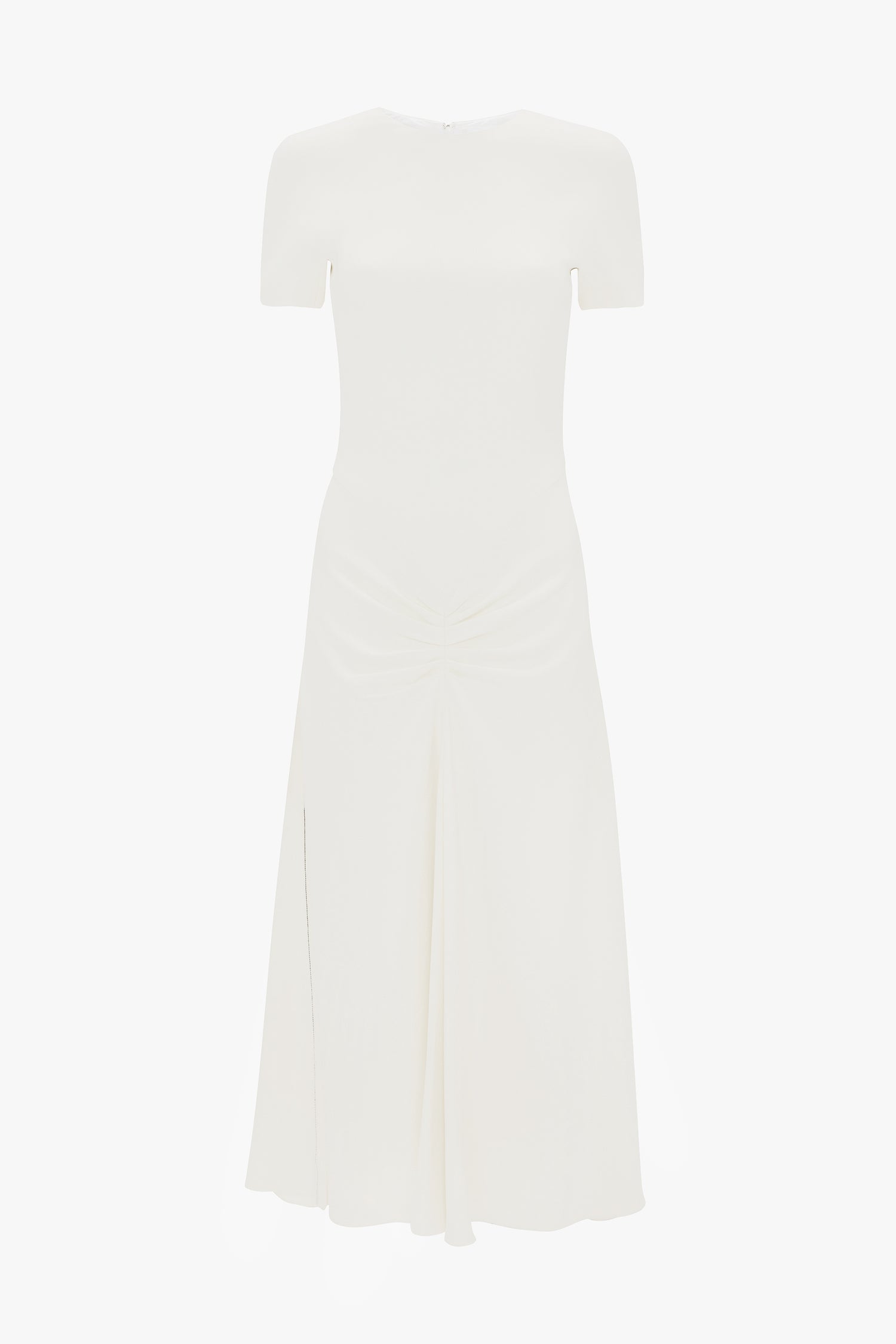 Taking references from the house’s signature T-Shirt dresses and hallmark midi styles, the Blaire Midi Dress In Ivory has a fitted bodice and a fluid, front-pleated skirt with longer-length hem at the back. A front V-shape waist seam adds definition to the silhouette, while the elegant shade of Ivory brings a romantic refinement.