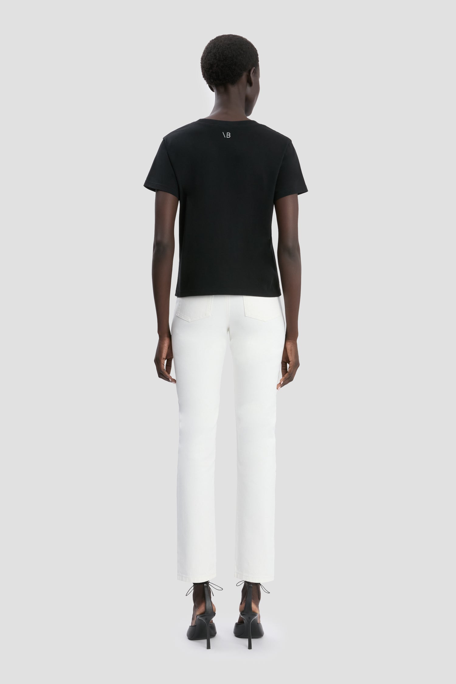 A traditional crew neckline and a straight fit give the Boxy T-Shirt in classic Black a relaxed, boyish silhouette. Finished with the house’s signature Victoria Beckham embroidered monogram at the back of the neck, it is crafted from 100% organic cotton for comfort and breathability.