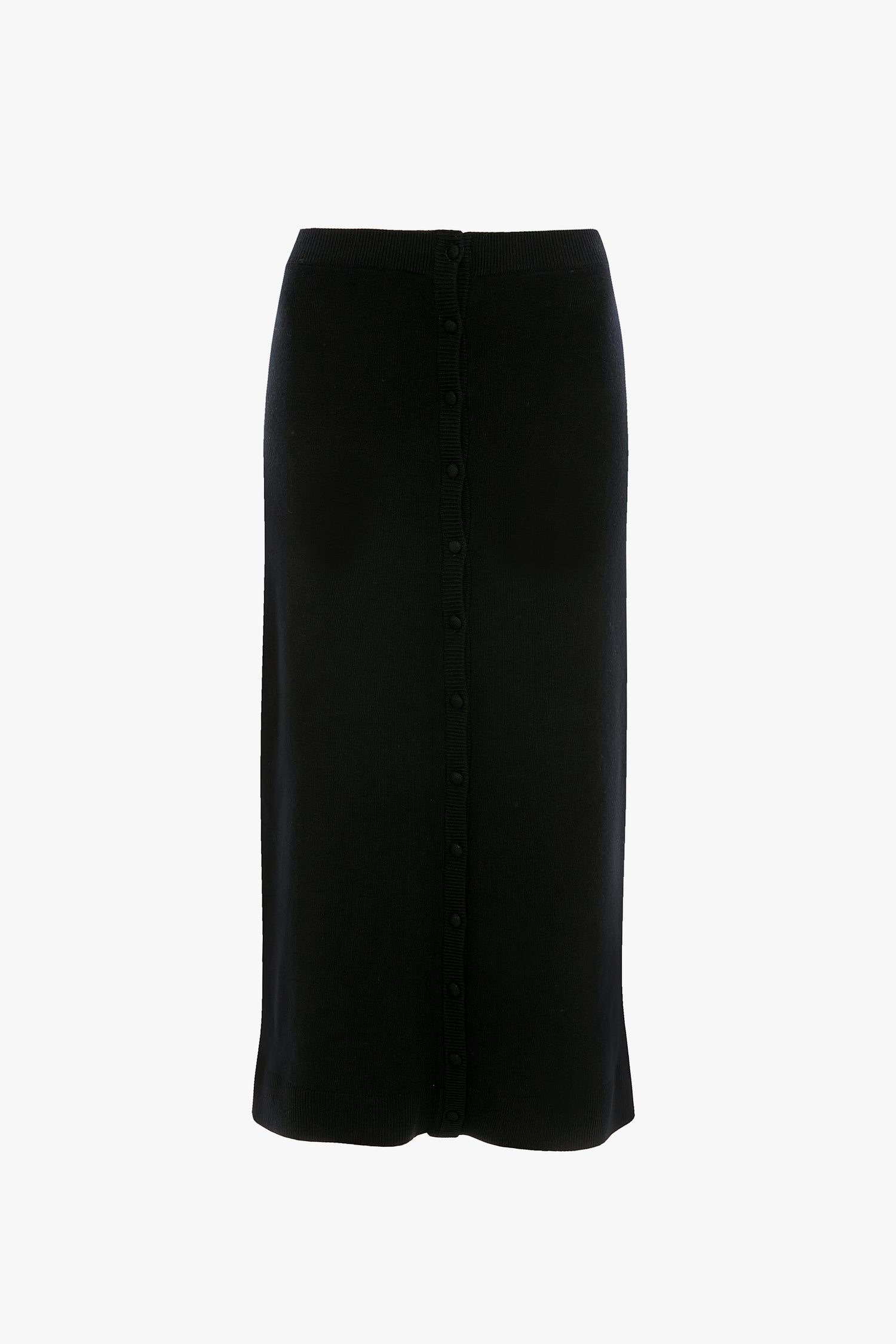 A front-button placket detail brings a modern twist and an erotic undertone to this sophisticated midi skirt. Presented in classic Black, the Button Detail Midi Skirt has a ribbed stretch waistband and complementary ribbed knit hemline, bringing an attractive symmetry to this wear-anywhere piece. Knit covered buttons keep the look elegantly pared-back.