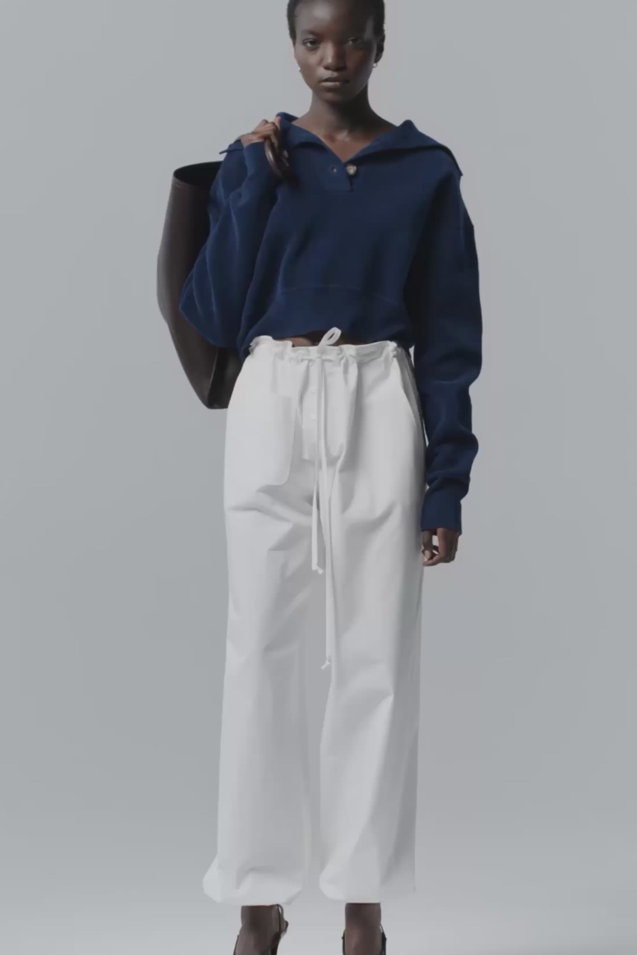 Crafted from a tactile Chenille knit, the Collared Jumper in Bright Navy has a laid-back sophistication. A knitted collar with buttons allows for versatile styling, while ribbed cuffs prevent the silhouette from appearing sloppy. A Victoria Beckham embroidered tape at the back of the neck completes the look.