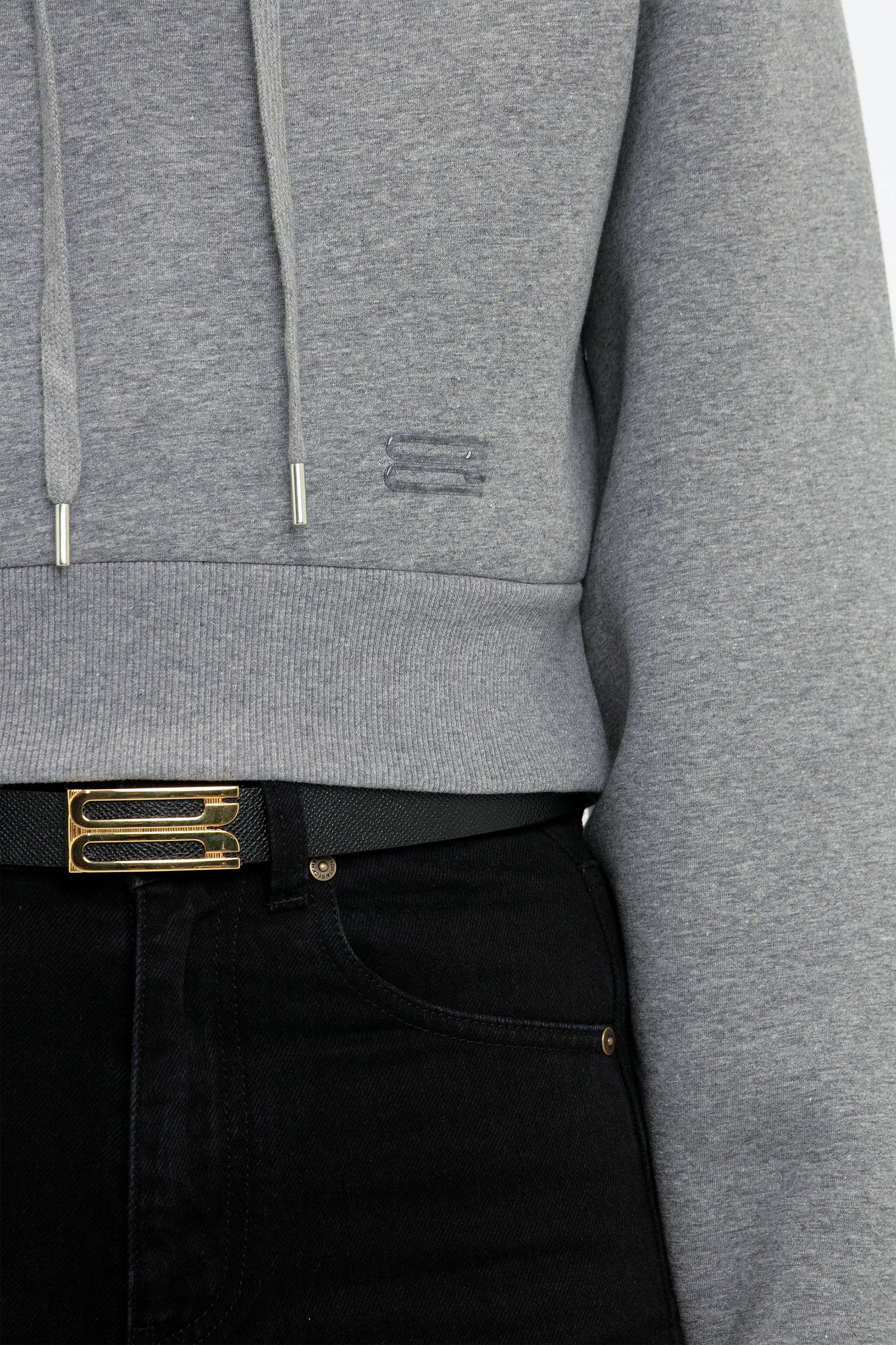 Crafted from a bonded fabric with a light stretch for a boxy fit, this Cropped Hoodie sits comfortably at the waistline for a neat silhouette. It has a structured hood, with a metal-tipped drawstring at the front neck and a silicone B logo detail at the left front body. Classic full-length sleeves and ribbed hemline and cuffs complete the look.