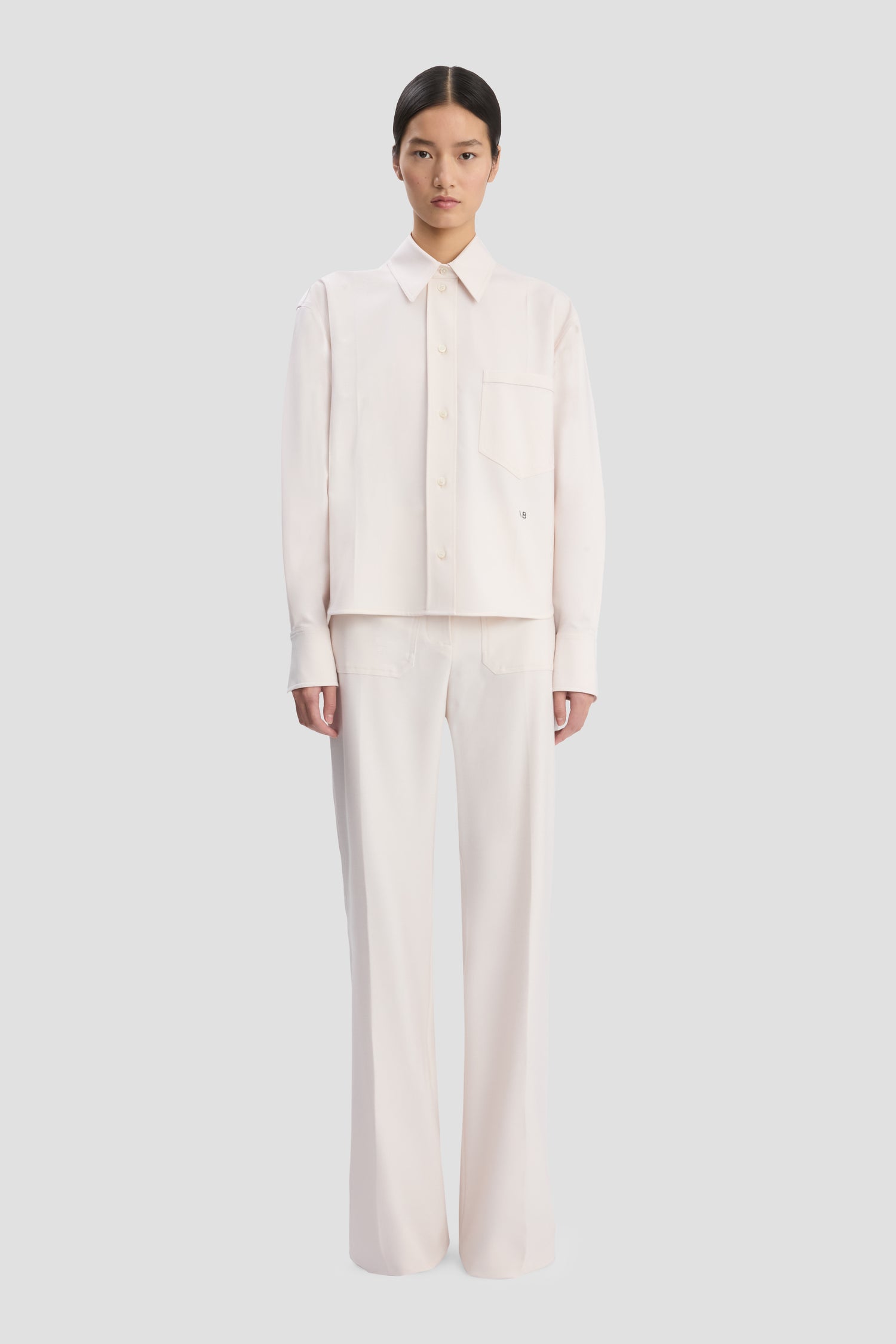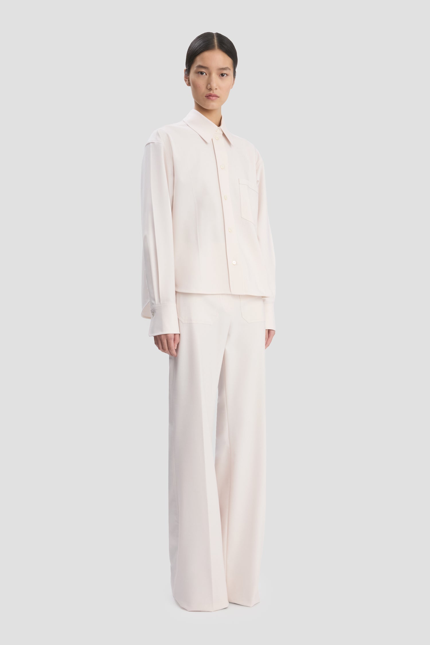 A cropped hemline imbues traditional shirting with a modern edge. Presented in versatile Bone, the Long Sleeve Shirt is crafted from a lightweight wool blend and has a box pleat at the back for added structure. Tonal stitching on the collar and back yoke and a contrasting stitch at the chest pocket and cuffs add discreet talking points.