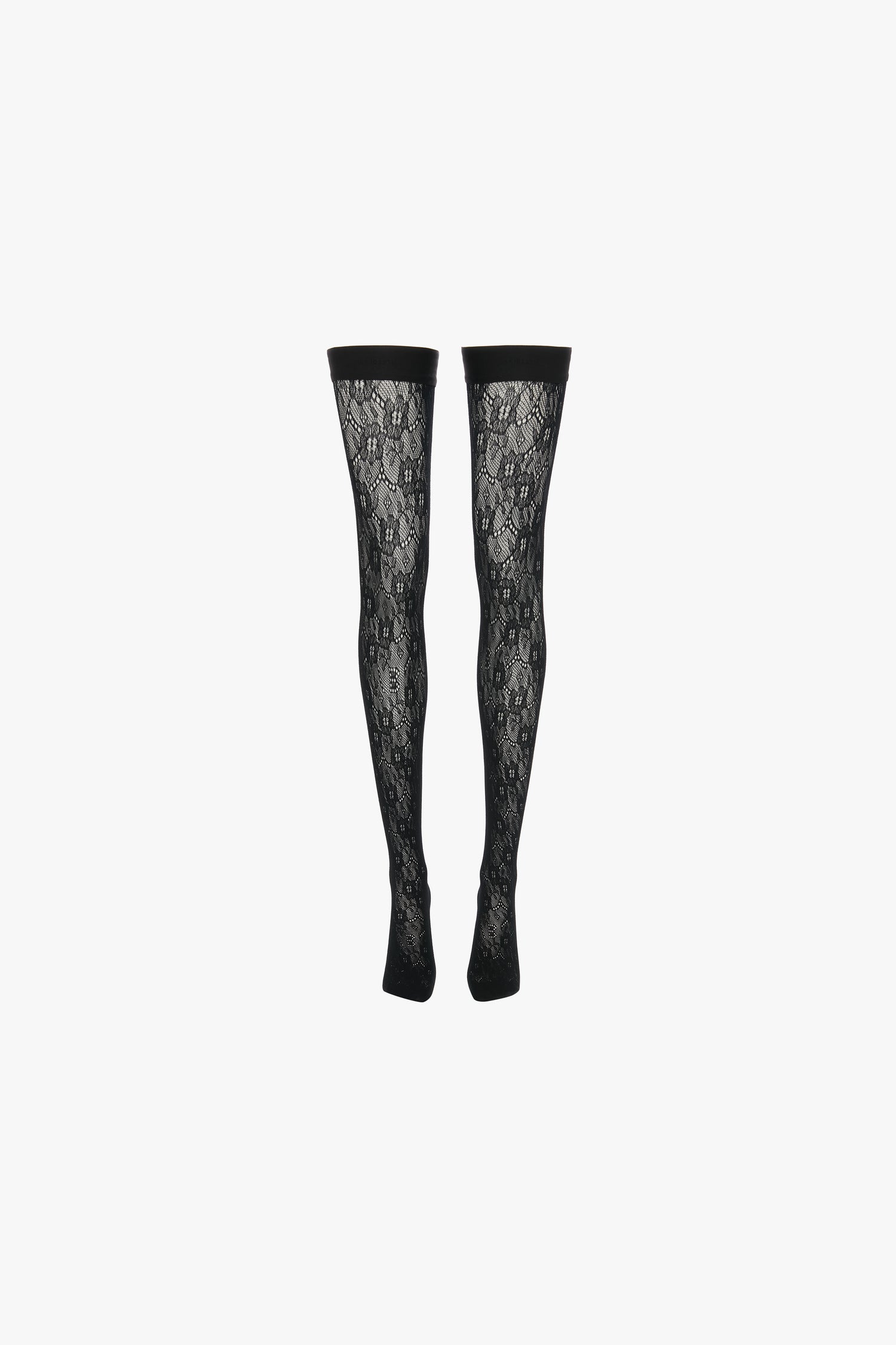 An all-over house monogram motif imbues the VB Monogram Lace Hold-Ups with a unique personality. Designed in denier-40 with a sheer finish and a seamless, sag-free construction, they are a provocative and polished proposition for the new season.