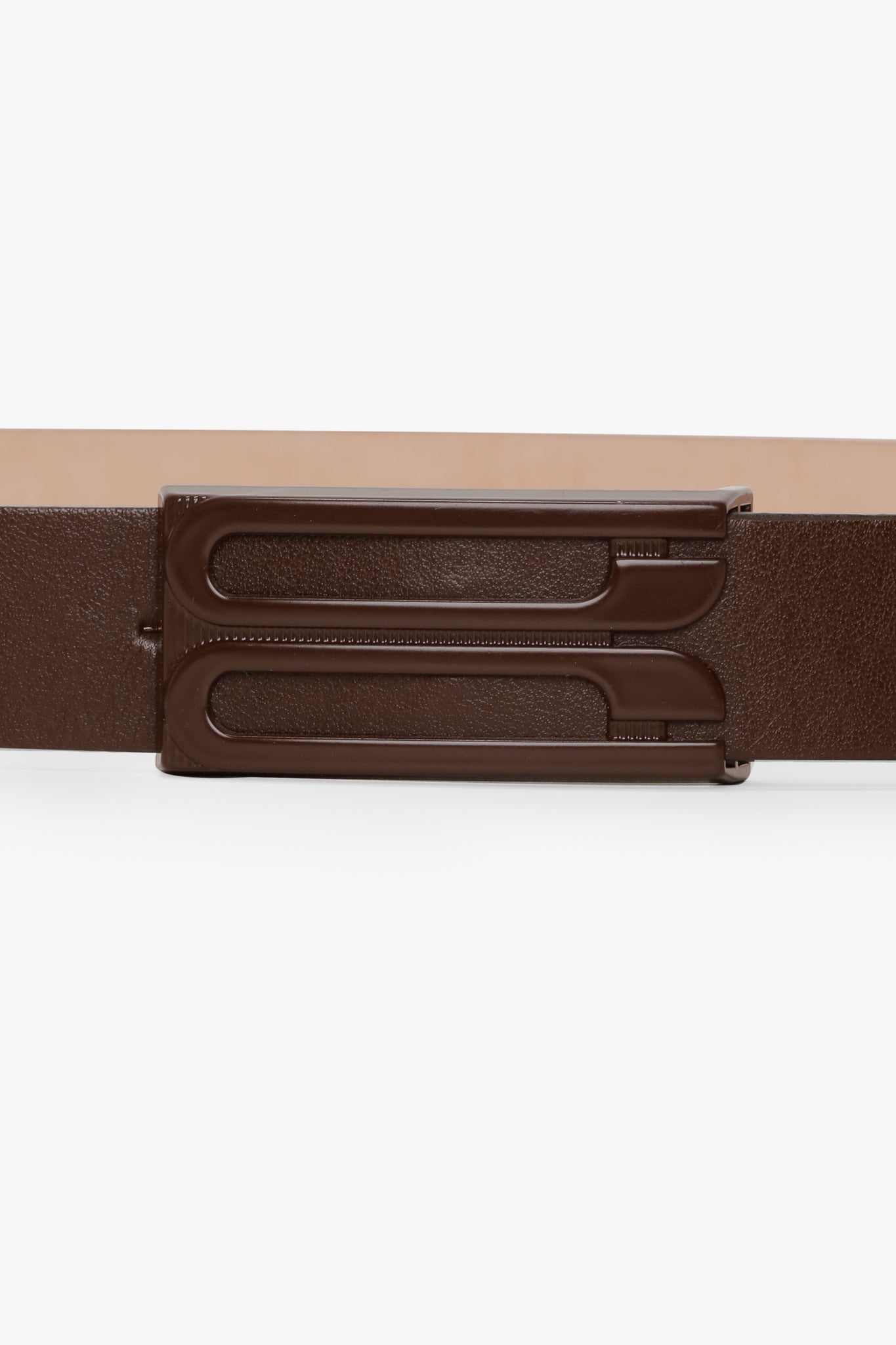 The utilitarian-inspired Tonal Dorian Belt has a tonal matte finish on the style’s signature B Frame hardware, which is new to this season. Presented in Dark Brown, it is crafted in Italy from smooth calf leather and is perfect for elevating everyday denims or adding a utilitarian sensibility to feminine separates.