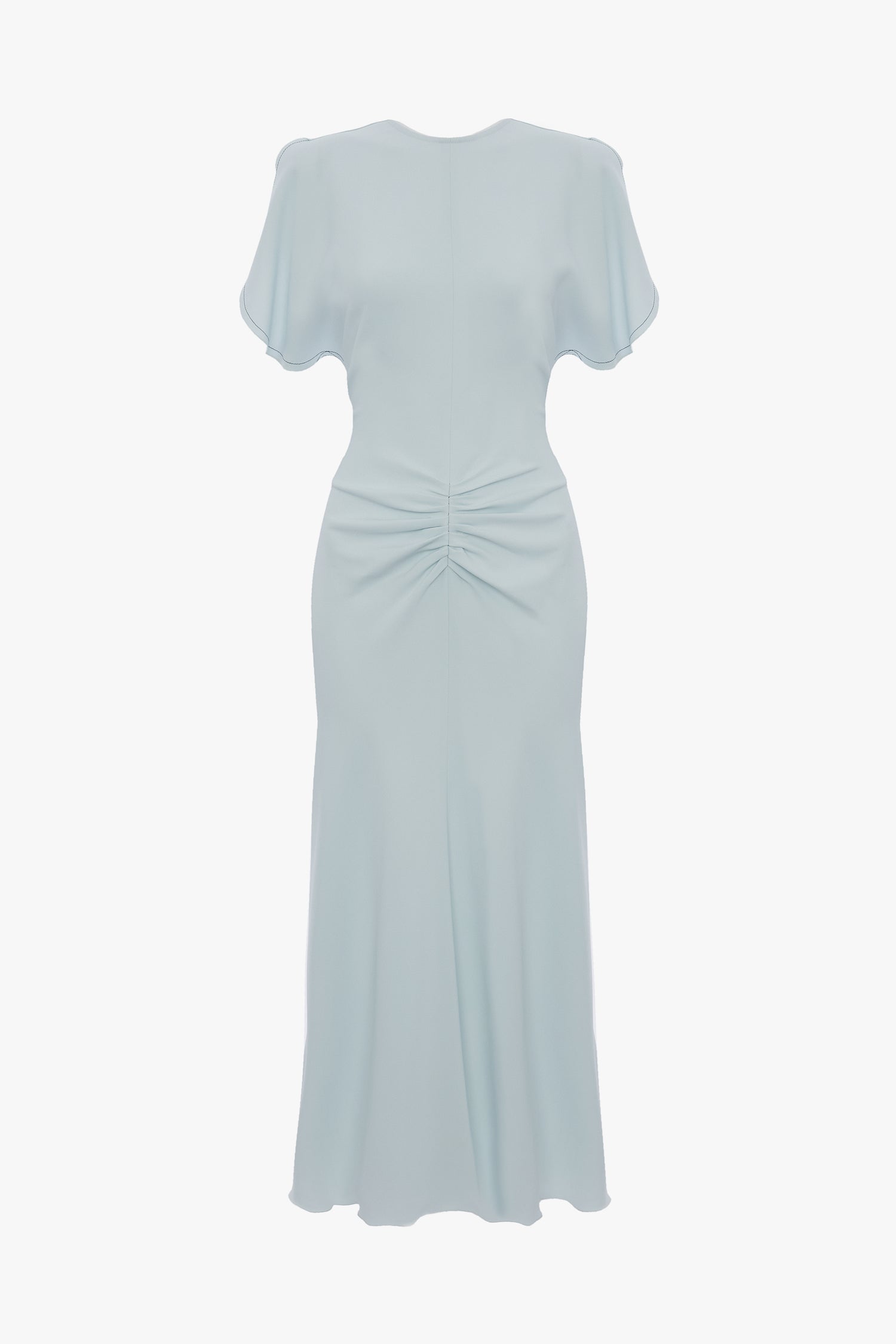 The house’s signature Bela Midi Dress is crafted from crepe back satin and is fitted at the hips with a flared skirt for a beautifully feminine silhouette. Front and back pleat details add tactile talking points, while side seams with a contrasting topstitch bring an elevated finishing touch. A new Glacial Blue colourway brings added refinement.