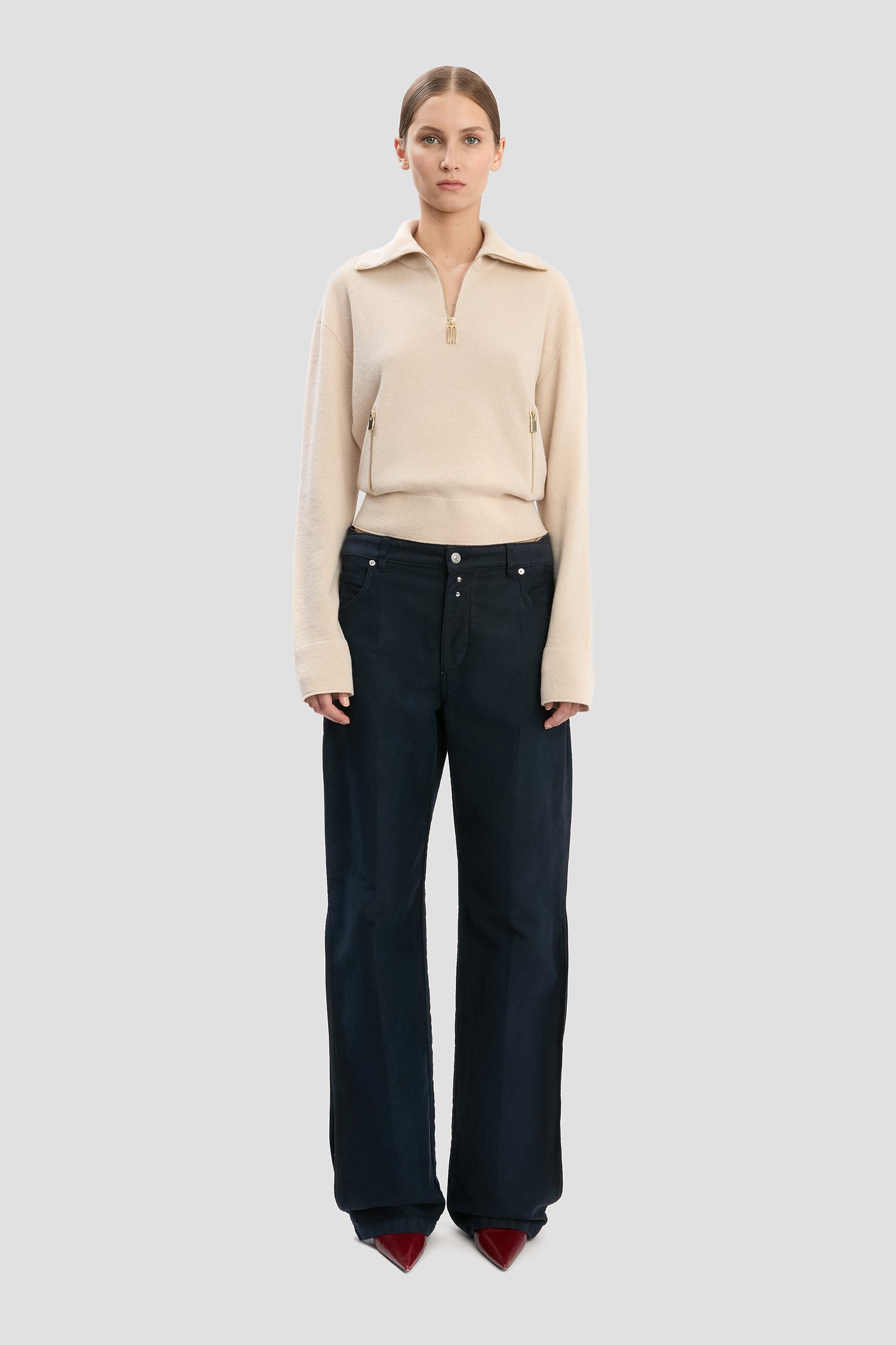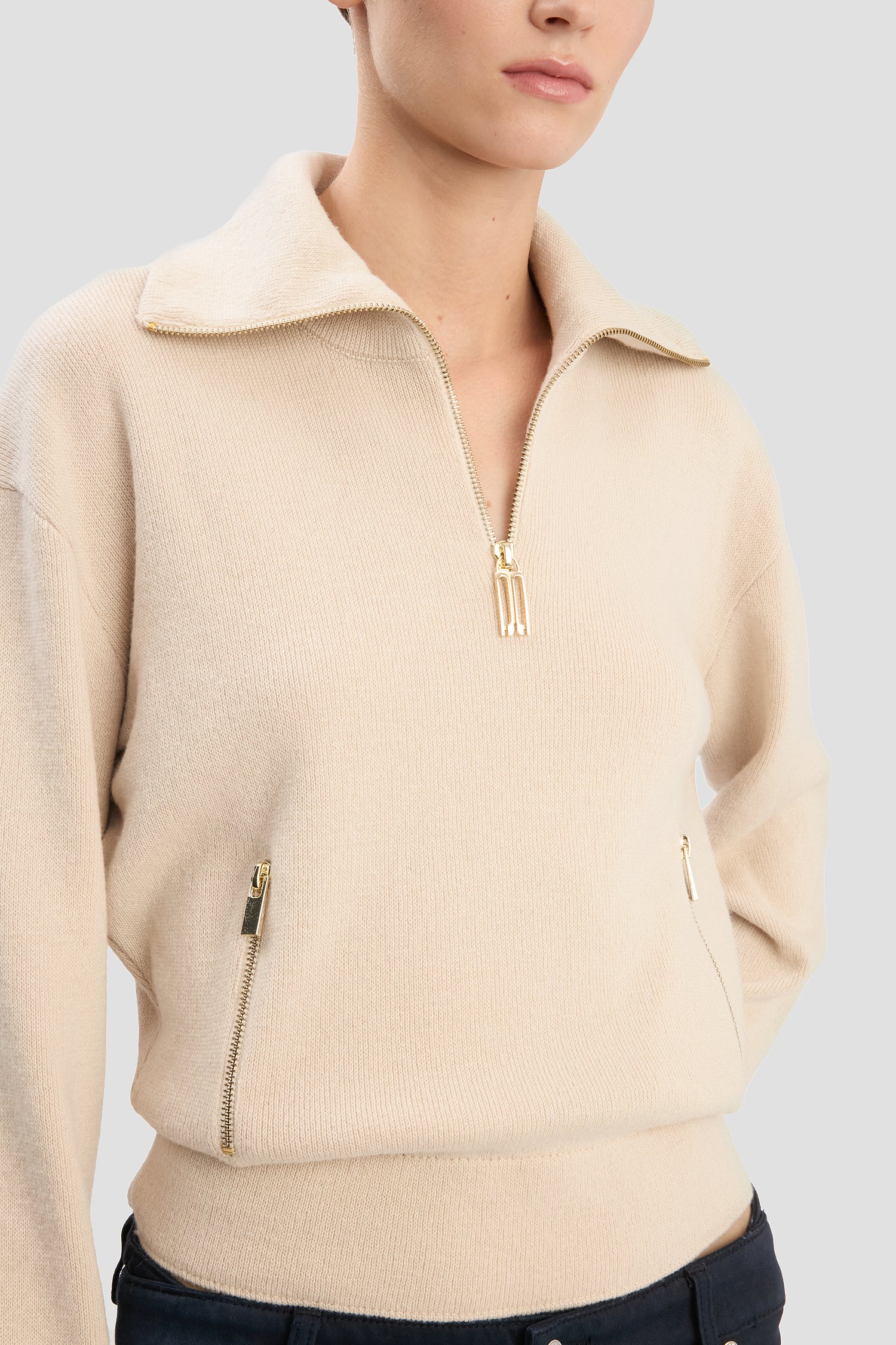 Made from a luxurious cashmere-wool blend, the Half Zip Milano Jumper has a versatile quarter-zip neckline that can be worn as a polo neck or a V-neck. Finished with a branded metal B puller, this versatile neckline brings an athleisure wear sensibility that is balanced by the feminine Pale Rose colourway. Practical zip-front pockets complete the look.