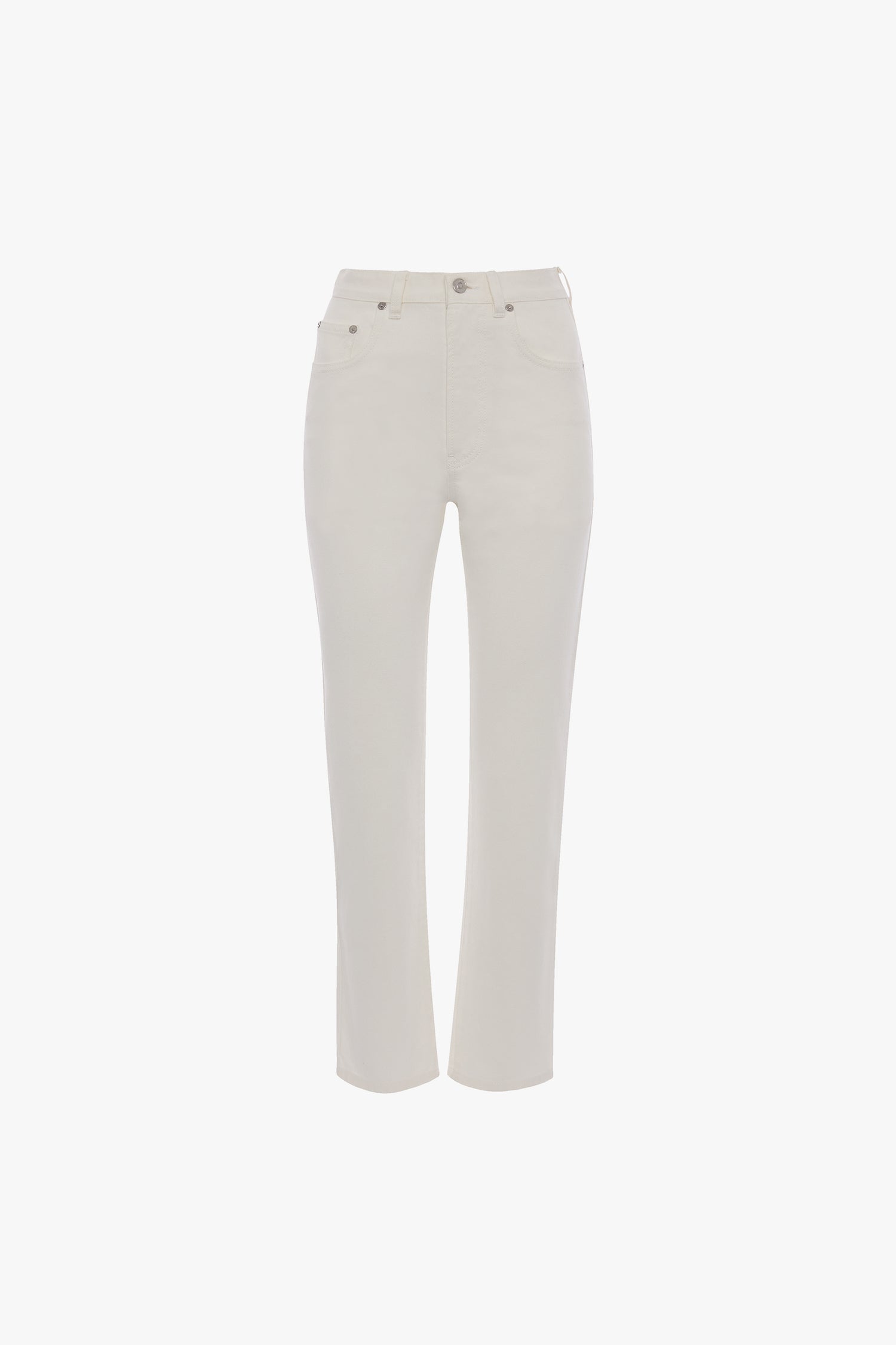 Crafted from non-stretch, mid-weight denim, these flattering high-rise jeans have a straight leg and cropped hemline. Presented in Washed White for a contemporary take on the utilitarian favourite, they have a traditional five-pocket design and tonal topstitching for an elevated finishing touch.