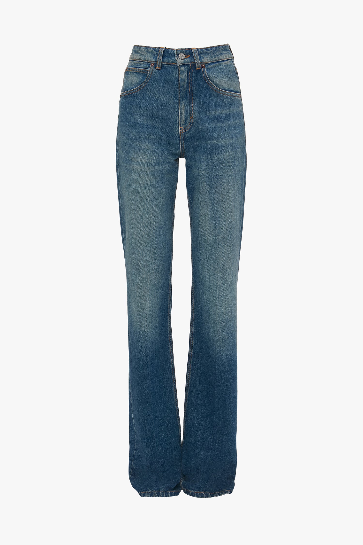 The Julia Jean is a house favourite, popular for its relaxed fit and laid-back look. Crafted from soft denim, it has a figure-flattering high waistline and an elongating straight leg. Presented exclusively in a versatile Mid Blue wash, it has discrete design details including a silver branded denim shank button and copper branded rivets, tobacco topstitching and a branded leather patch at the back of the waist.