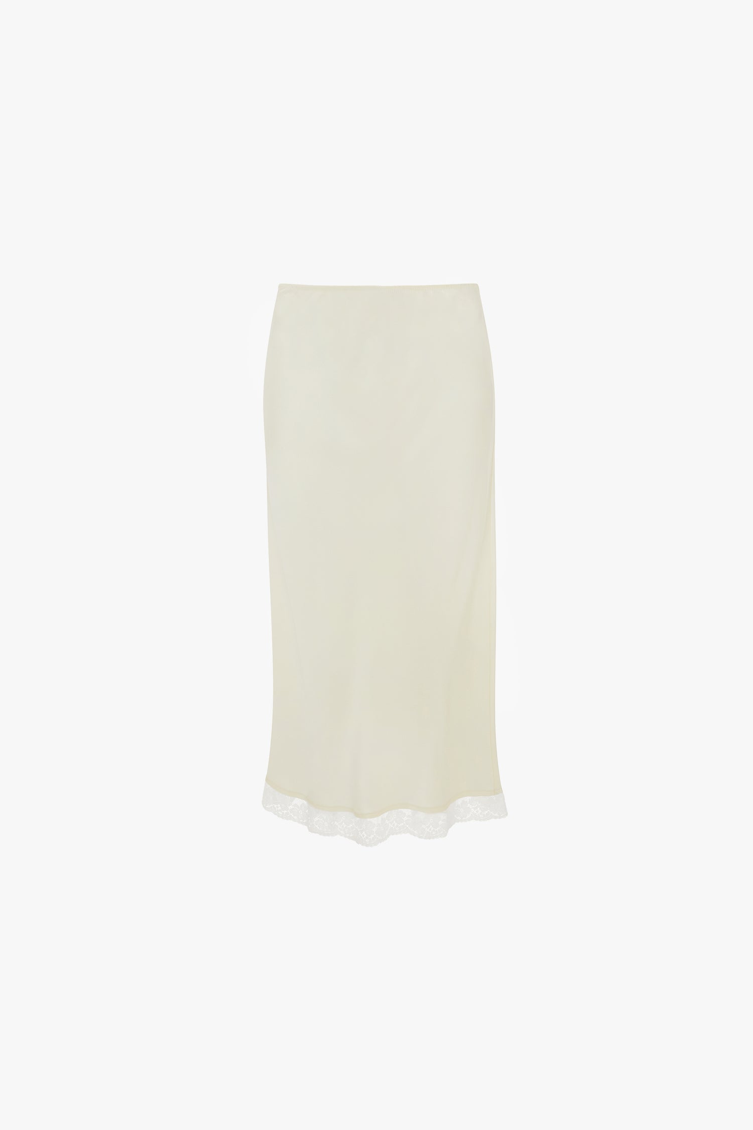 Effortlessly elegant, the Lace Trim Slip Skirt has a pull-on design with elasticated waist for comfort and ease. A pretty lace trim at the hemline punctuates the pared-bared aesthetic and adds a coquettishness that is subtle but sexy. The nostalgic shade of Ivory brings a restrained romanticism to the piece.