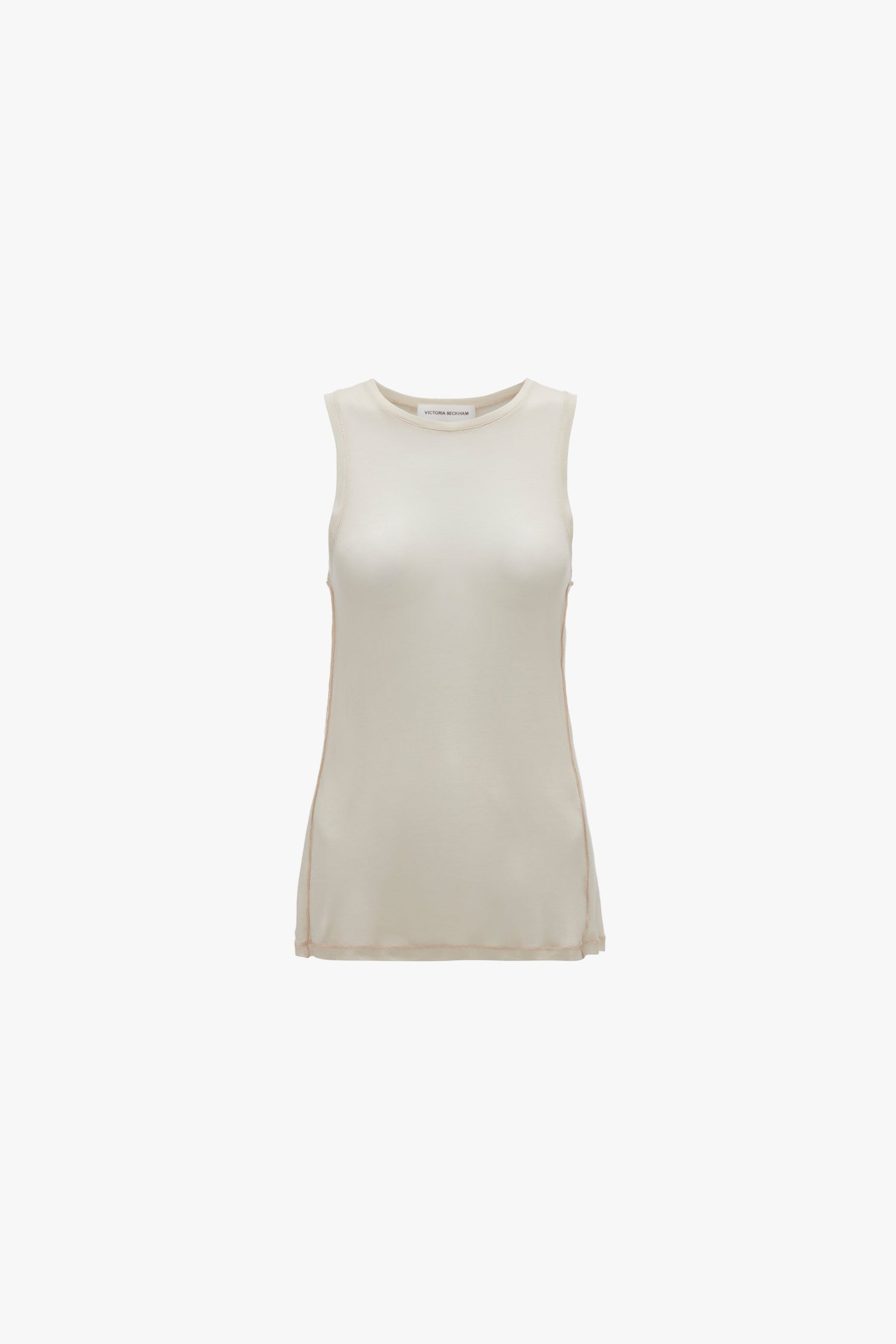Crafted from semi-sheer, lightweight jersey to softly skim the body, this Lightweight Tank Top comes in a versatile shade of subdued Birch. It has a crew neckline, sleeveless cut and side panel inserts.