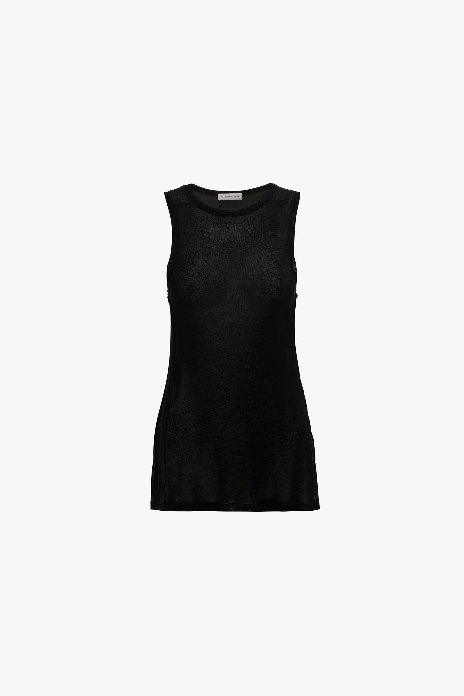 Crafted from semi-sheer, lightweight jersey that softly skims the body, this Lightweight Tank Top comes in classic Black for effortless styling. It has a crew neckline, sleeveless cut and side panel inserts.
