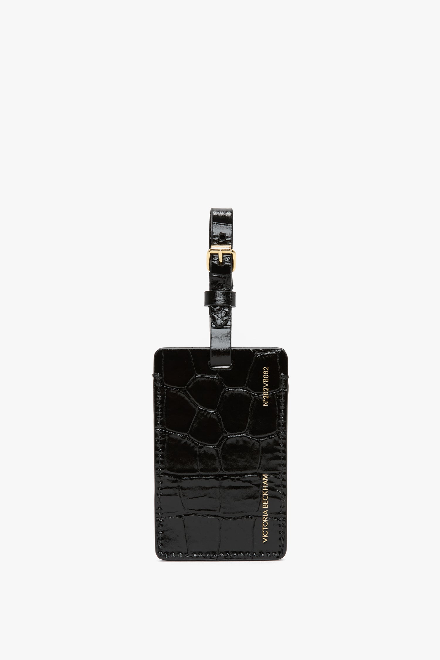 Discreet luxury is a hallmark of the Victoria Beckham brand and it’s embodied in the house’s signature Luggage Tag. Crafted in Italy from a textured croc-embossed leather and lined in nappa leather, it is presented in classic Black for an understated aesthetic. It has an adjustable strap and concealed detail window and features the house’s signature gold branding with Victoria Beckham logo and unique serial code.
