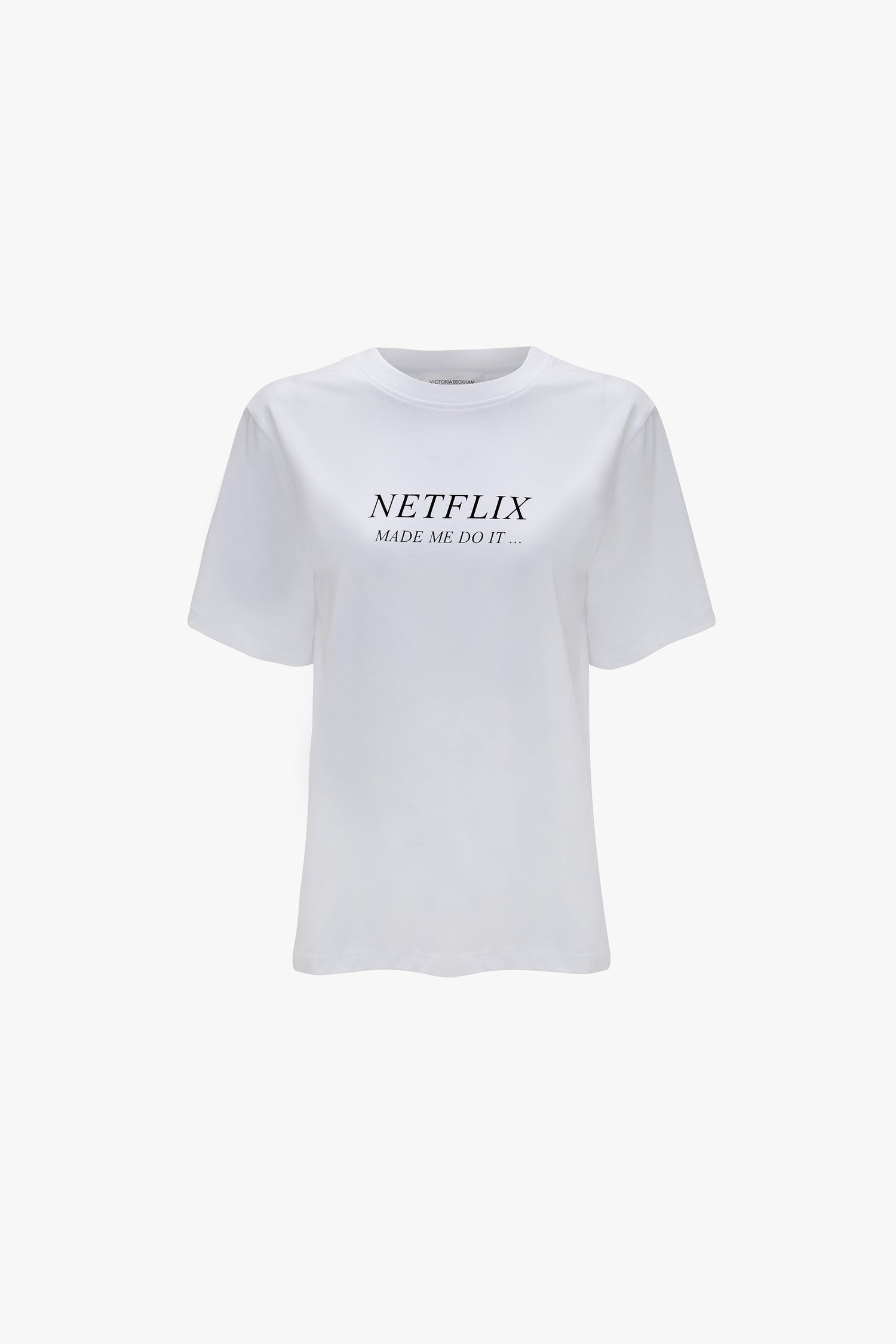 Slogan T-Shirts are a hallmark of the Victoria Beckham brand and reflect the house's tongue-in-cheek playfulness. With a classic Victoria Tee fit, the Netflix Made Me Do It Slogan T-Shirt has a relaxed but polished silhouette. Made from 100% organic cotton, it has a tactile, elevated feel.