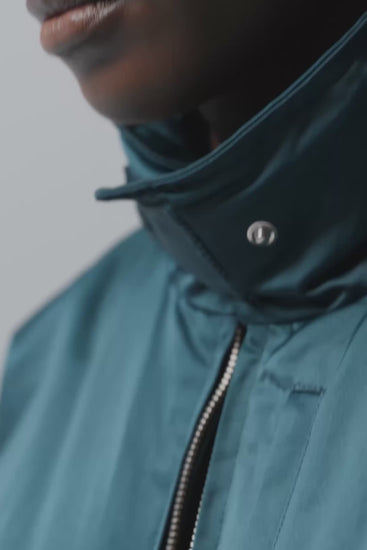 Contemporary cool is embodied in the Padded Bomber Jacket. Crafted from recycled cotton sateen, it draws on traditional utilitarian design codes, including an elasticated hemline, elbow patches and double front patch pockets with flaps. A distinctive shade of Dark Teal brings the house’s unique point of view.