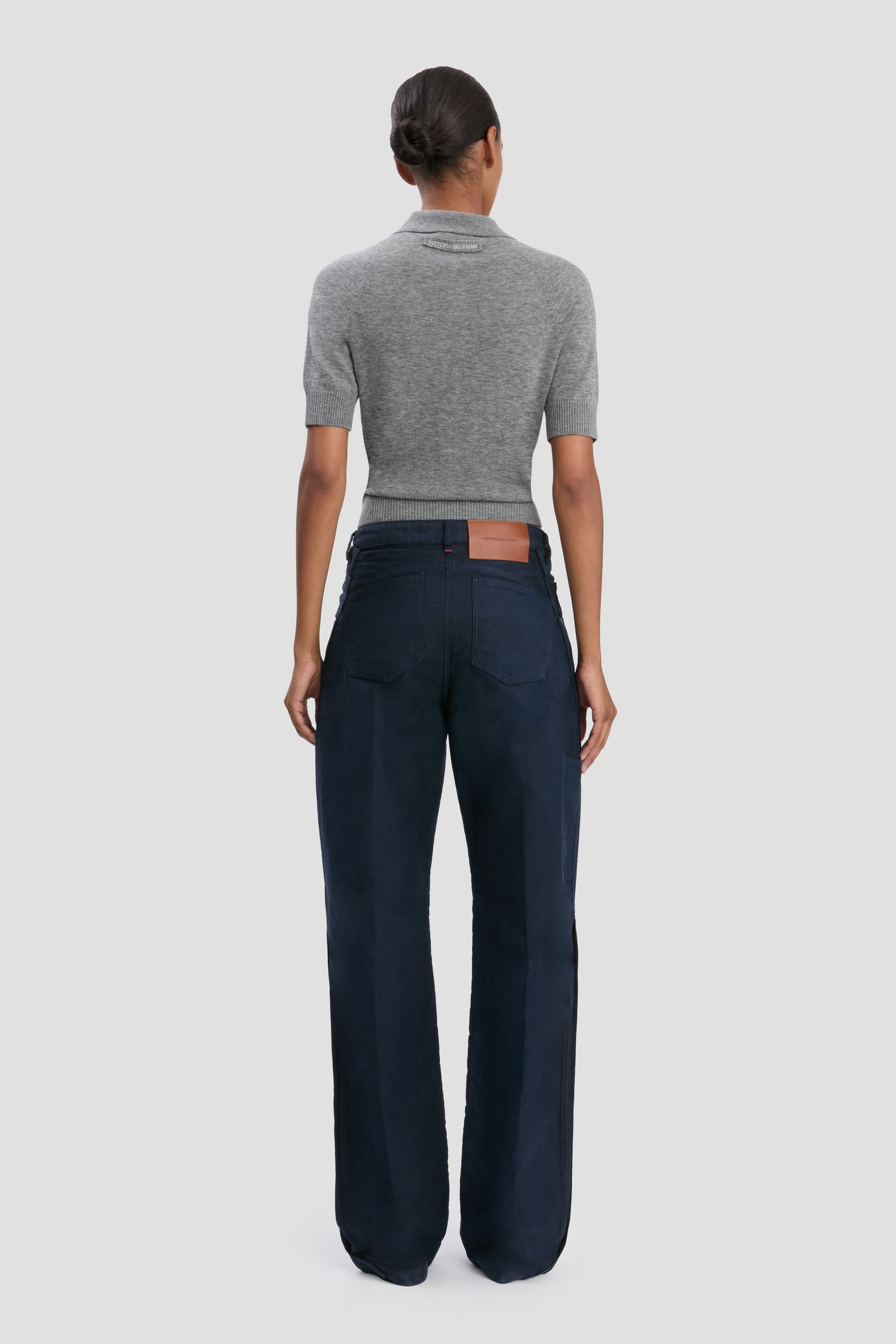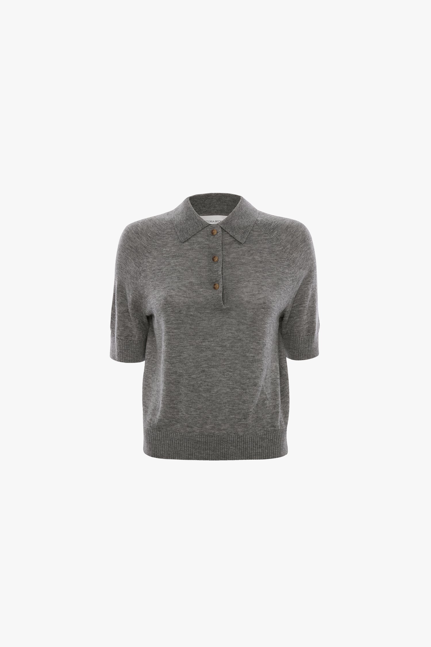 Casual but refined, the Polo Top in Grey Marl is crafted from a lightweight, fine-gauge knit. It has a traditional collar with buttons, relaxed raglan sleeves and a ribbed trim. It is finished with a Victoria Beckham embroidered tape at the back of the neck.