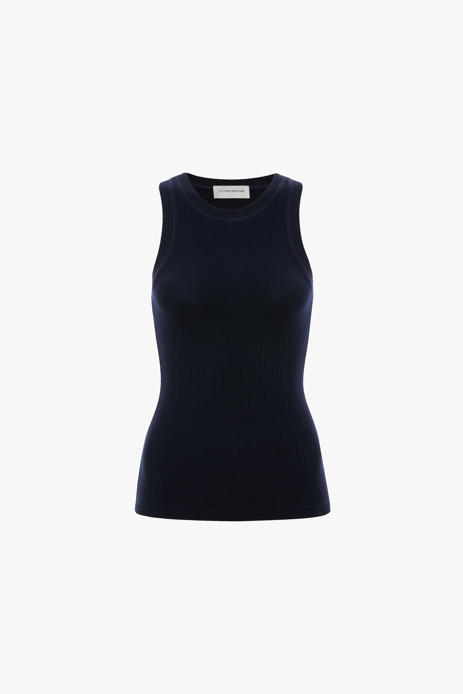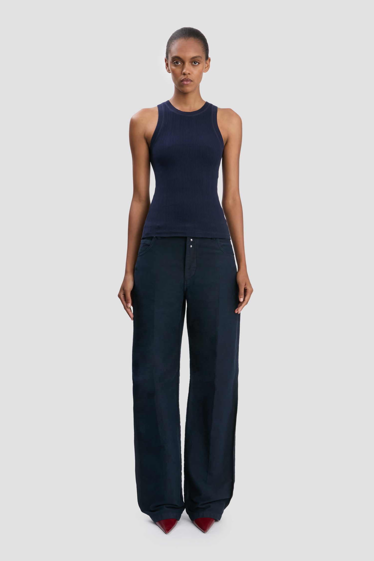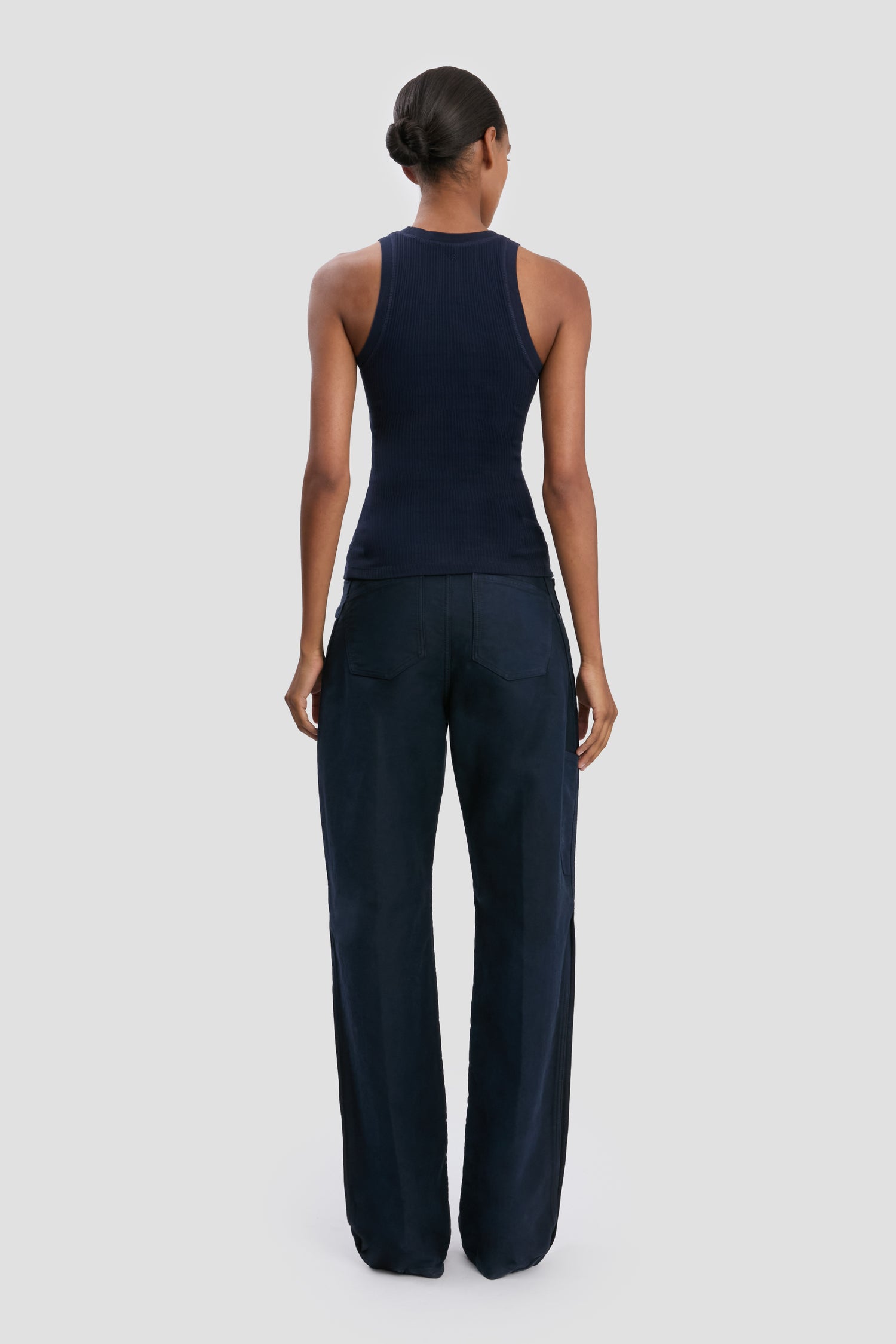 A foundational piece in any wardrobe, the Rib Tank in Navy is crafted from 100% organic ribbed cotton for a tactile finish. Designed for a slim fit, it has a relaxed racer-back design and a contrasting Victoria Beckham monogram at the centre back neckline.