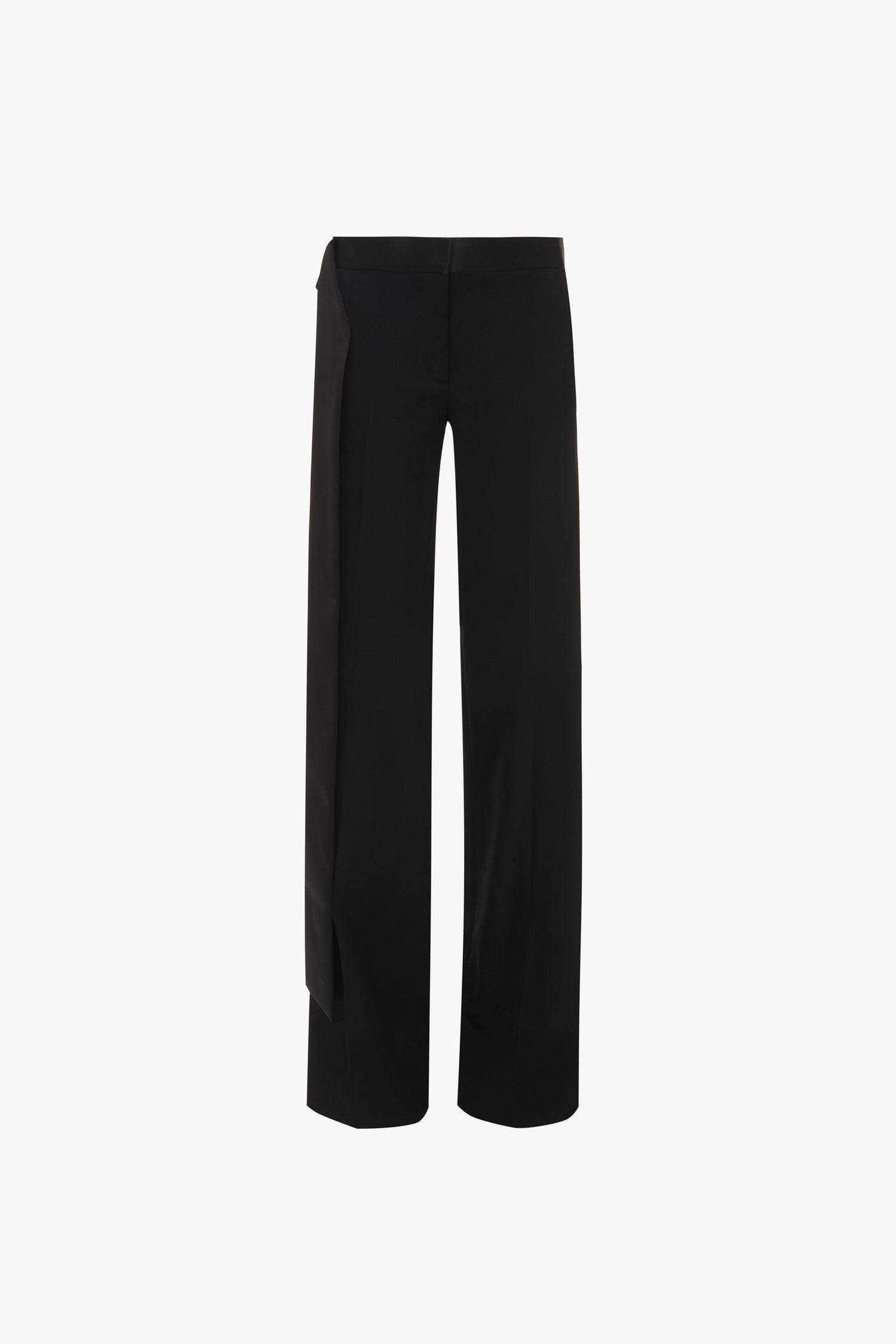 New to the Victoria Beckham tailoring edit, the Satin Waistband Trouser in Black marries masculine and feminine beautifully. Immaculately tailored with a contrasting satin waistband resonant of tuxedo style, the Satin Waistband Trouser is imbued with an elegant satin side tie that falls flamboyantly to midi length. A highlight of Victoria’s for SS25, these wear-anywhere trousers are finished with slanted front pockets and back pockets with satin welts.