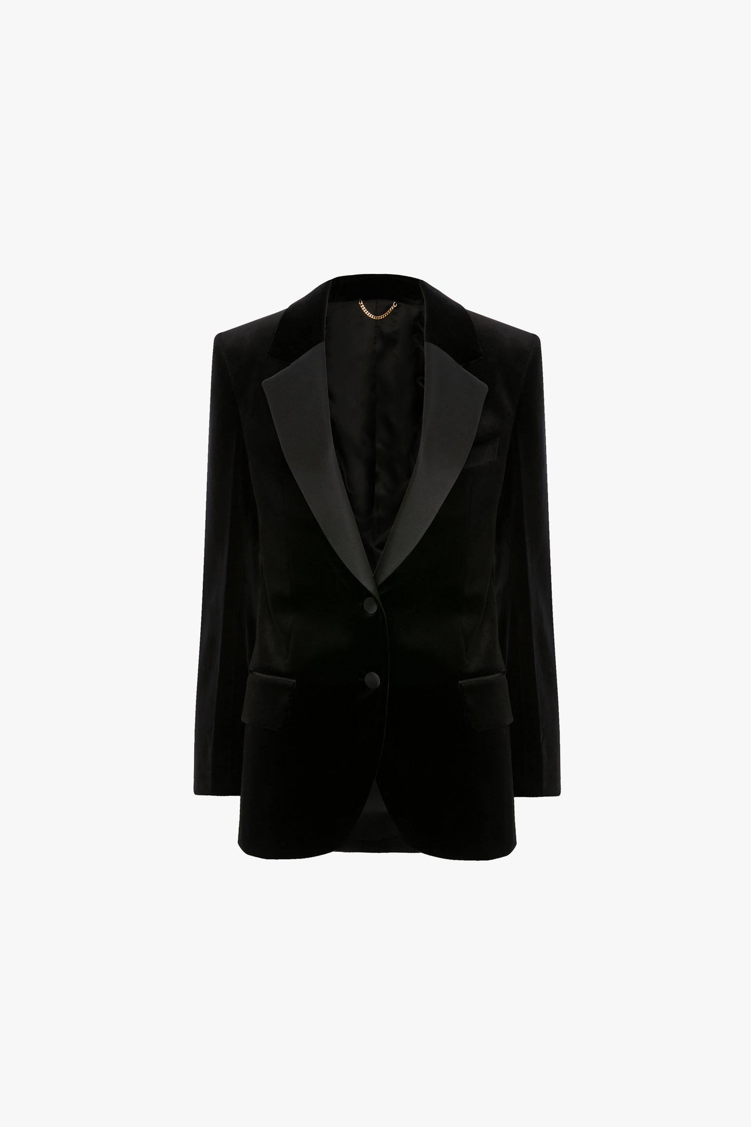 The Single Breasted Tailored Jacket in velvet embraces classic tuxedo style. Two satin covered buttons fasten at the waist and a centre back vent ensures ease of movement. Contrasting satin lapels add a contemporary point of difference.