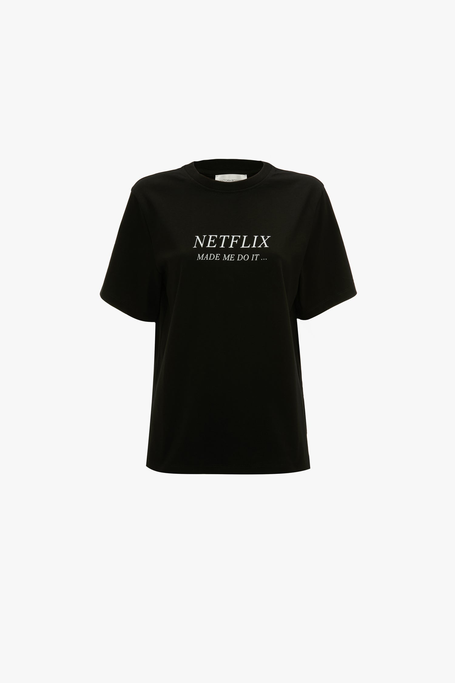 Slogan T-Shirts are a hallmark of the Victoria Beckham brand and reflect the house's tongue-in-cheek playfulness. With a classic Victoria Tee fit, the Netflix Made Me Do It Slogan T-Shirt has a relaxed but polished silhouette. Made from 100% organic cotton, it has a tactile, elevated feel.