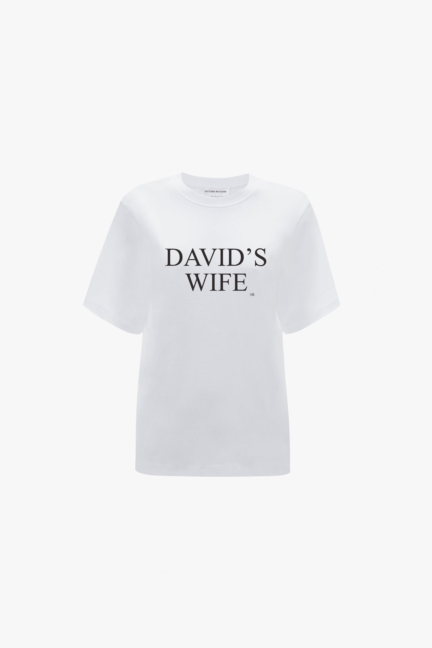 Nodding to the brand's playful side, the 'David's Wife' slogan T-shirt is crafted from soft, organic cotton with a relaxed fit. Dropped shoulder seams and a classic crew neckline give it a casual yet polished feel.