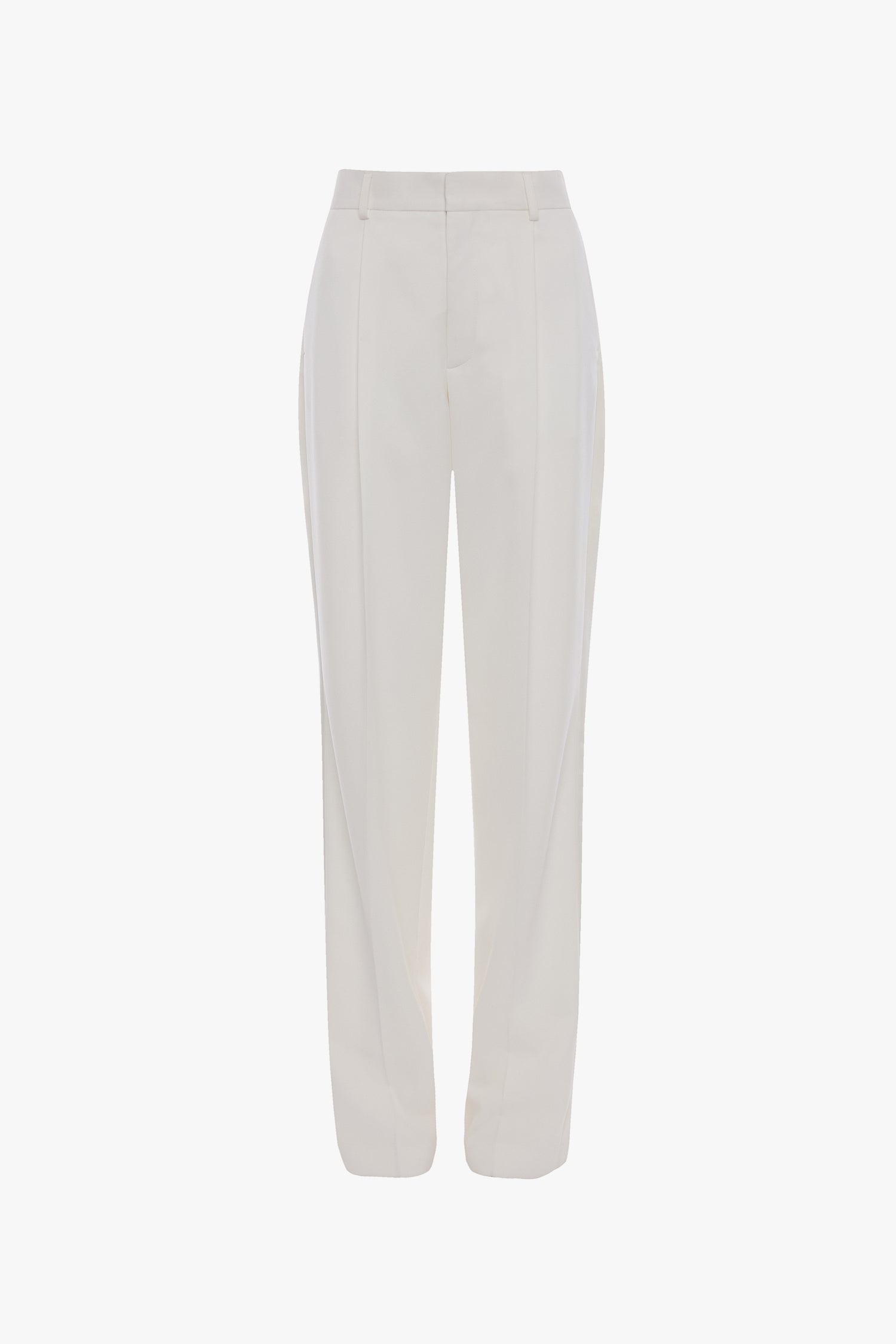 Meticulously tailored from grain de poudre, the Straight Leg Tailored Trouser is fully lined and has a mid-rise cut with front leg pleats. Classic suiting design codes such as side pockets, back jet pockets and belt loops complete the look, while the nostalgic shade of Ivory brings a feminine sensibility.