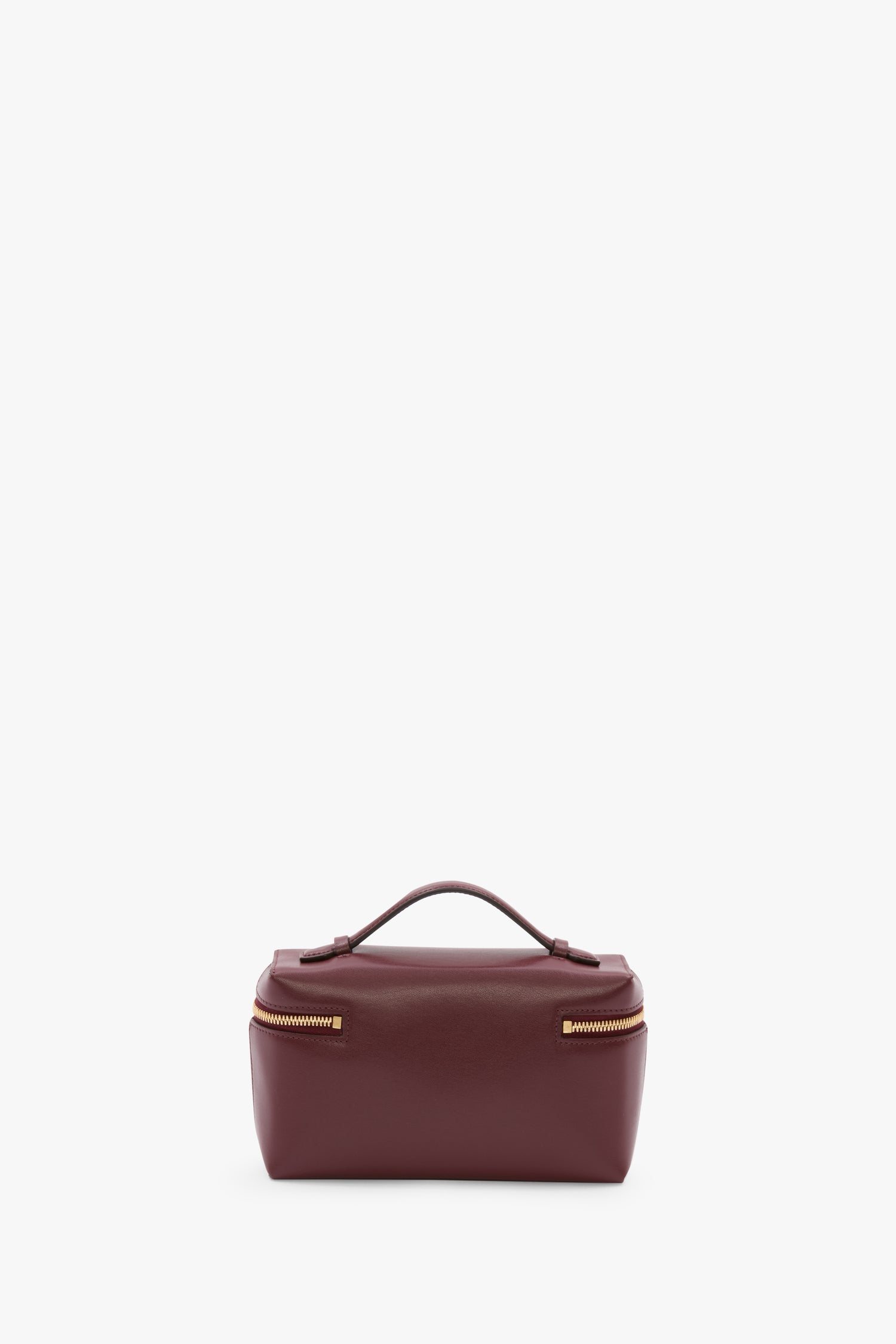 The dual purpose Vanity Crossbody in Burgundy cleverly combines practicality and polish. Crafted from 100% shiny calf leather, it has a top handle and removable crossbody strap for versatile use, plus an internal flat pocket and zip closure for secure storage. Microsuede lining adds a tactile finishing touch.