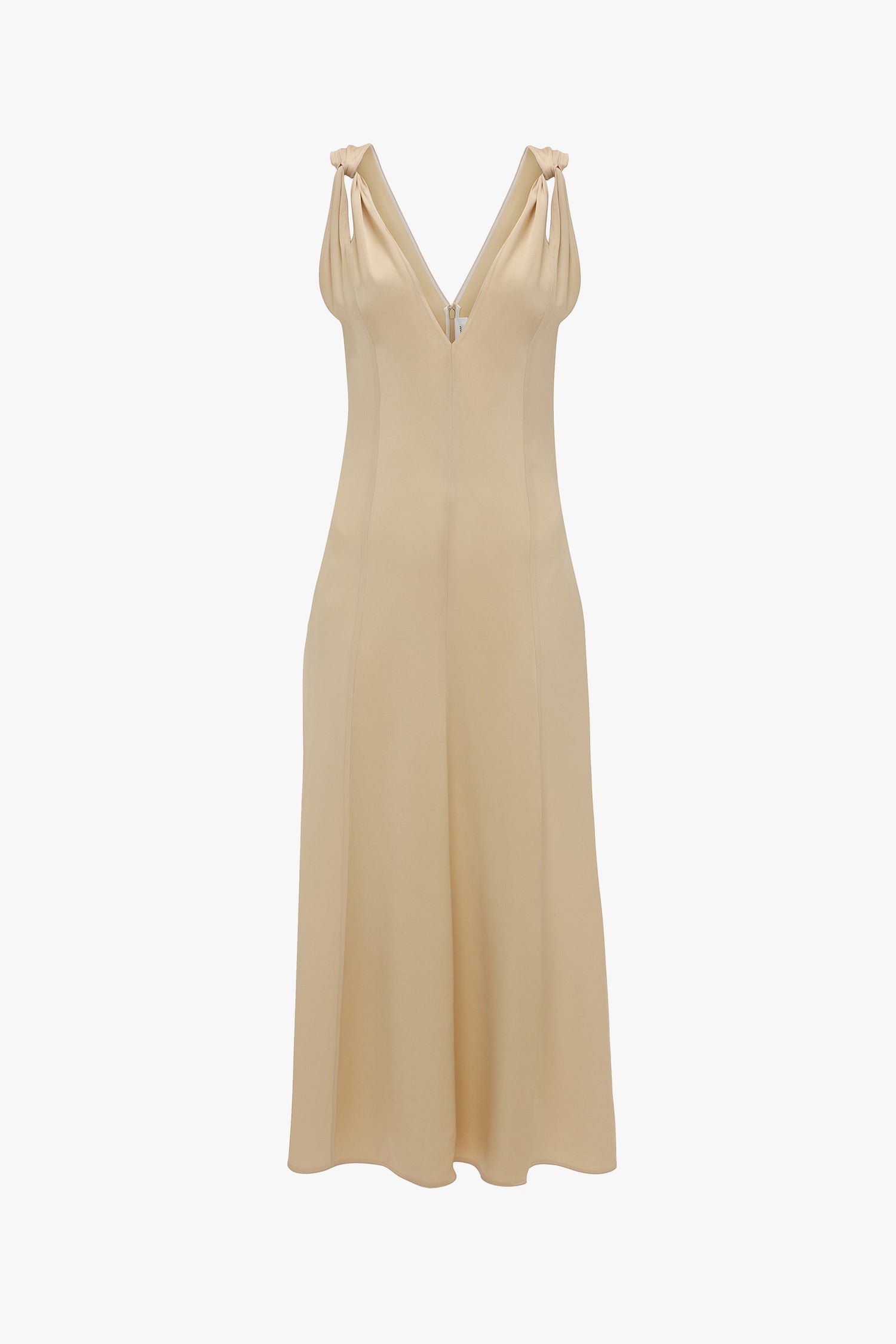 Effortlessly elegant, The Twist Shoulder Dress in Macadamia is crafted from a fluid crepe back satin and combines both matte and shiny finishes for visual interest. Tactile twisted detailing at the shoulders adds a point of difference to the silhouette, while tonal topstitching reflects the house’s attention to detail. With a sensuous deep-V neckline, it is a sexy and sophisticated proposition for the new season.