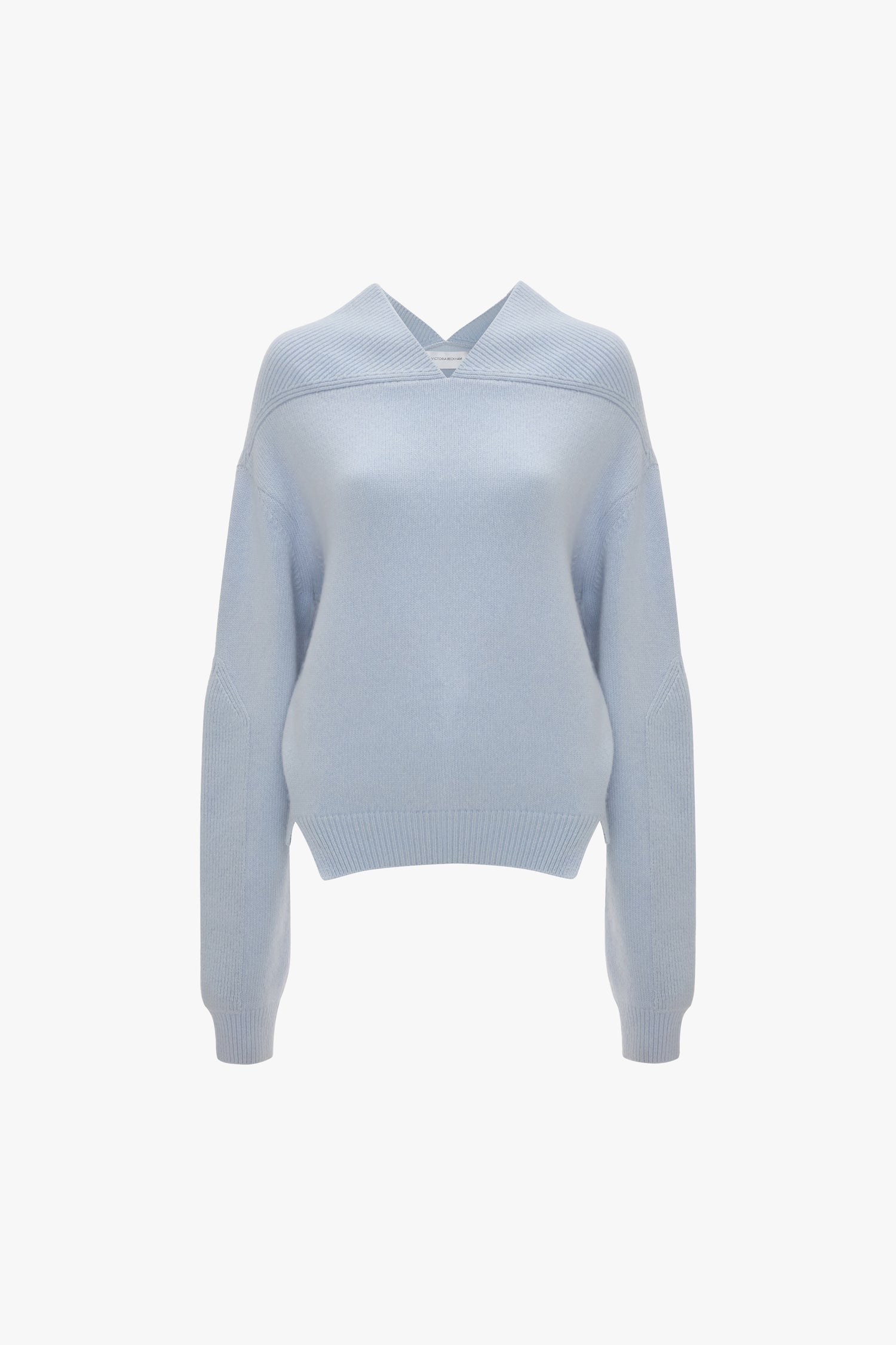 With a relaxed fit and ribbed knit patches on each sleeve, the V-Neck Yoke Detail Jumper has a boyish undertone, which is beautifully counteracted by the delicate shade of Delphinium. Side split hems imbue the silhouette with fresh energy and a branded embroidered tape at the back of the neck adds an elevated fishing touch.