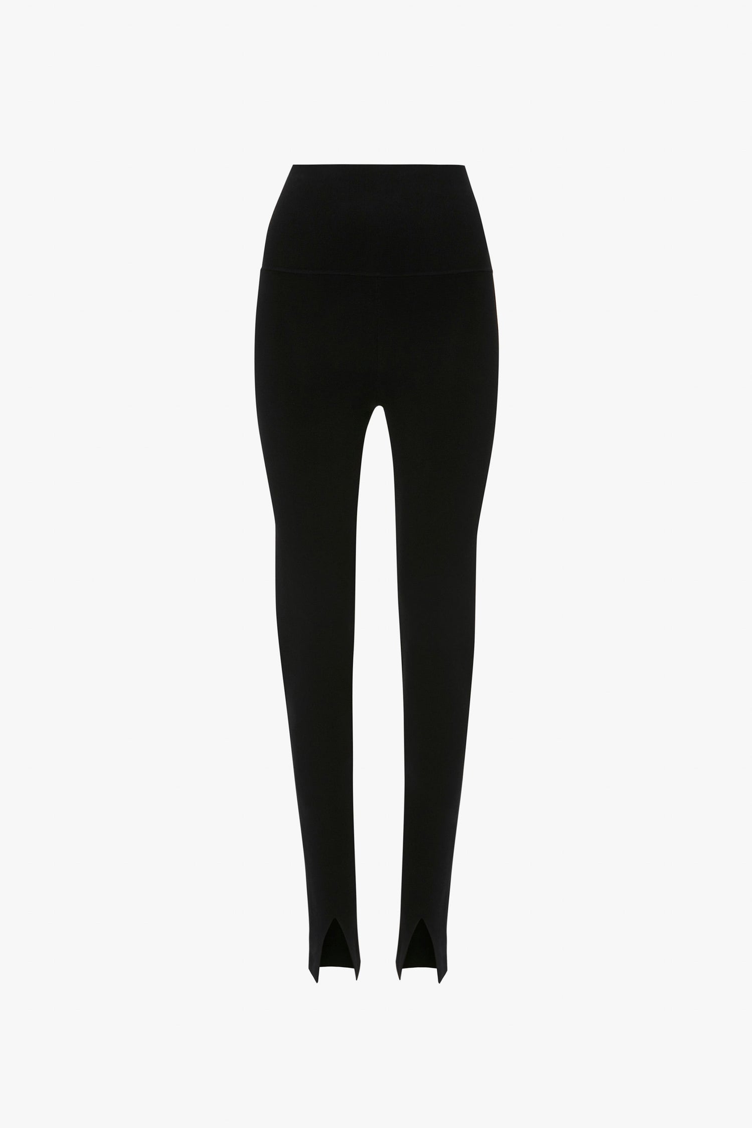 Crafted from our signature form-fitting knitwear fabrication, the VB Body Split Front Leggings in classic black are designed to fit seamlessly into the modern wearer's wardrobe. Considered front-facing cut-aways at the ankle elongate the leg, creating a contouring and versatile silhouette.
