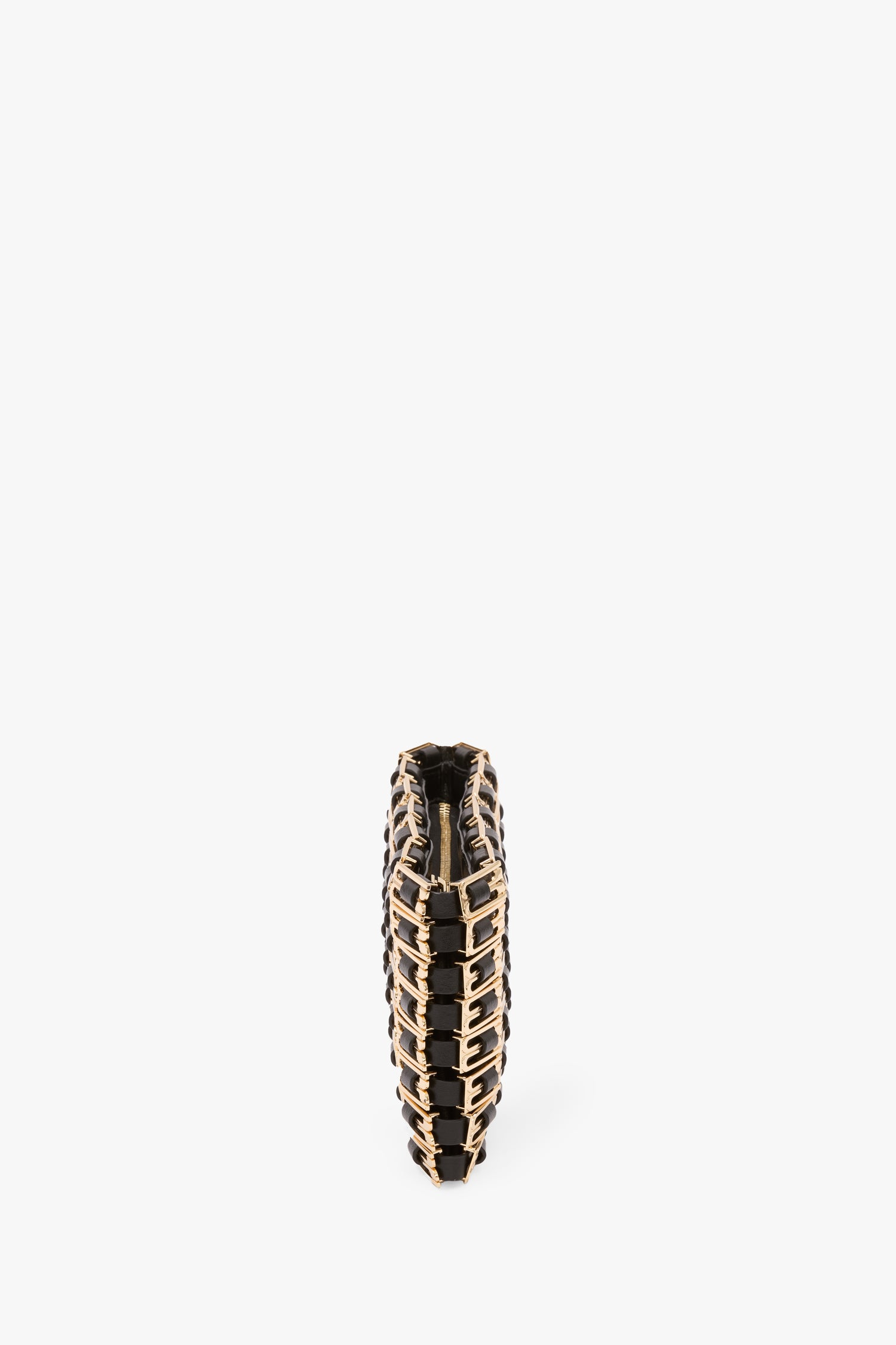 Woven calf leather brings a modern tactility to the Woven Dorian Pouch in Black. Designed with a zip top closure, internal flat pocket and leatherette suede lining, it is finished with attractive brass hardware.